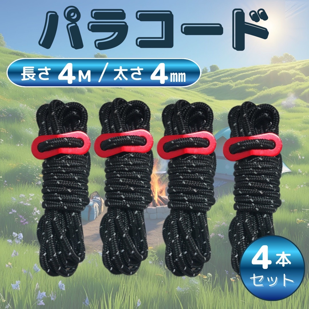 4mmの反射素材入りテントロープで、夜間の視認性も◎。