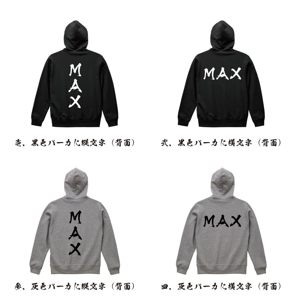 MAX オリジナル パーカ 書道家が書く プリント フルジップ パーカー S M L XL XXL 110 130 150 【 パチンコ・パチスロ 】