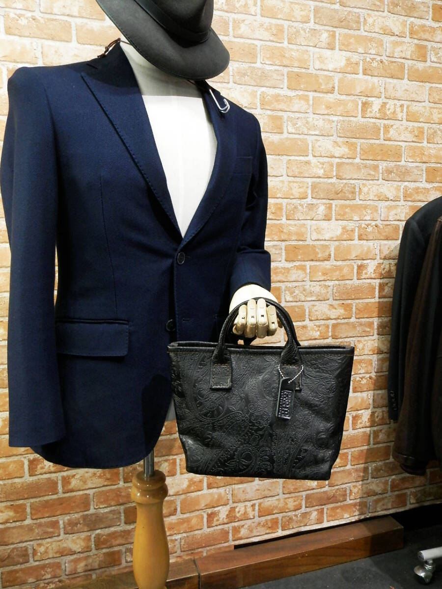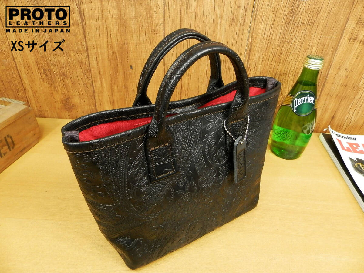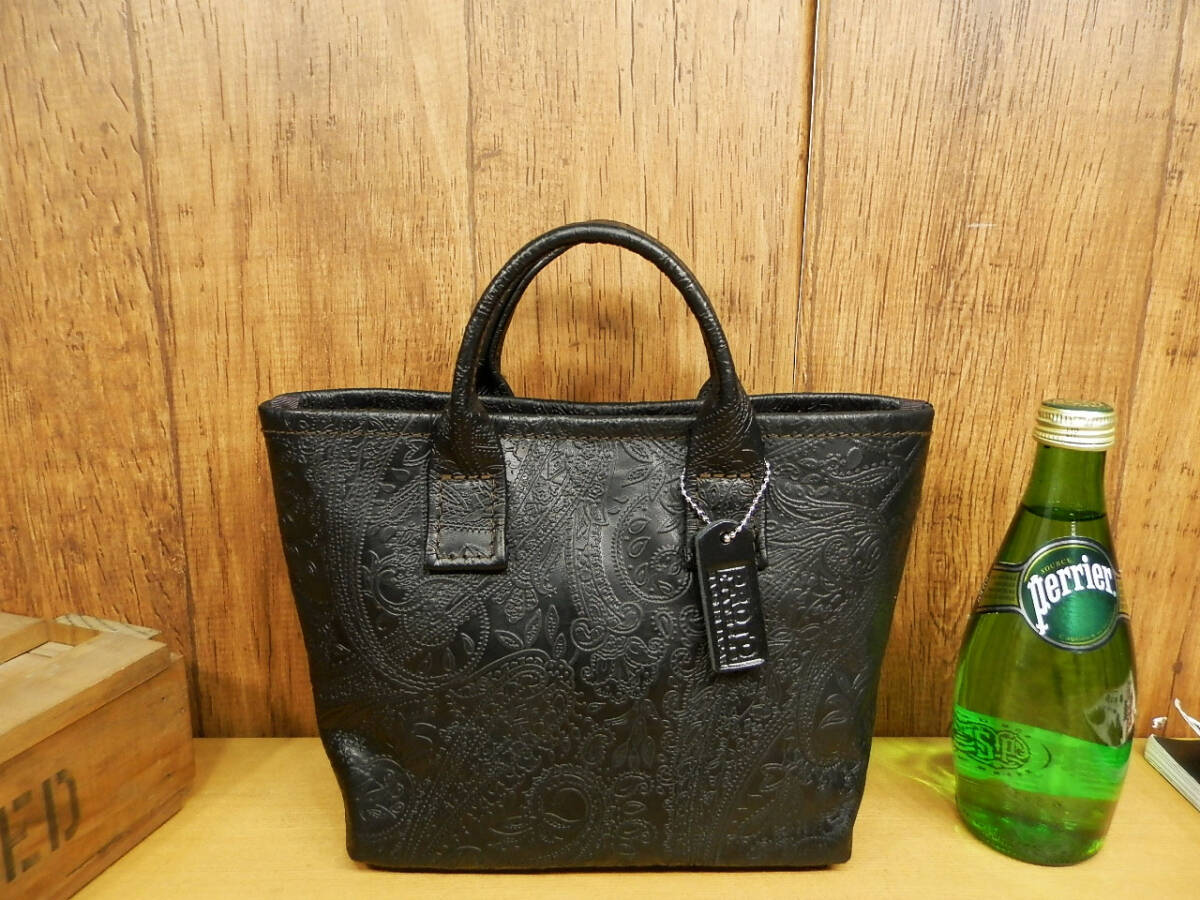 ☆XSサイズ☆ちょい悪ブラックペイズリーのミニトートバッグ!日本製 姫路レザー黒ハンドメイド本革