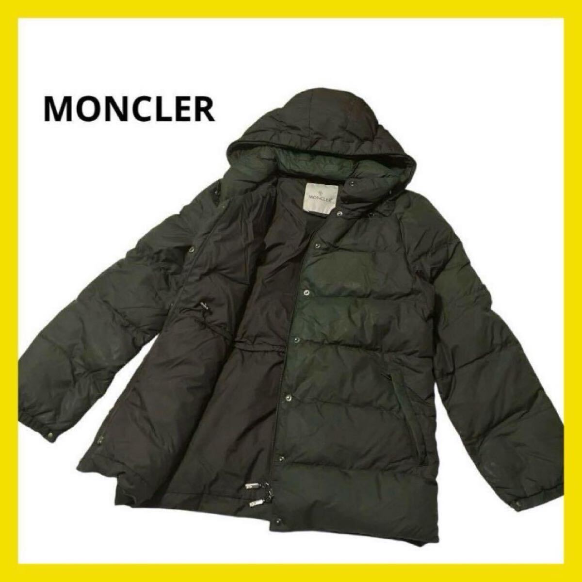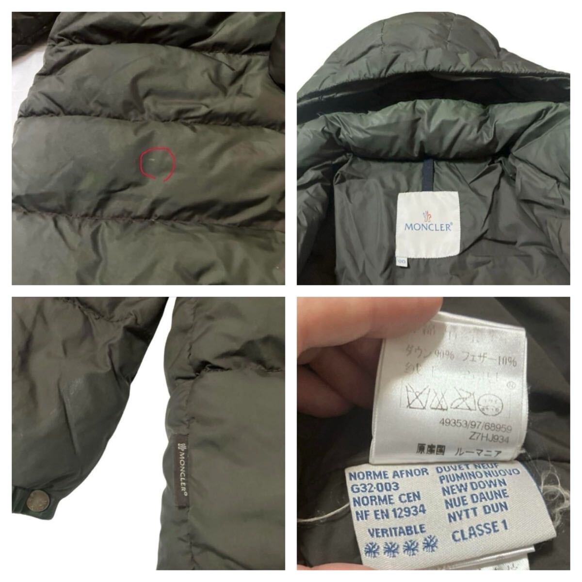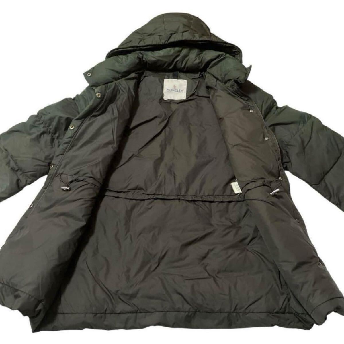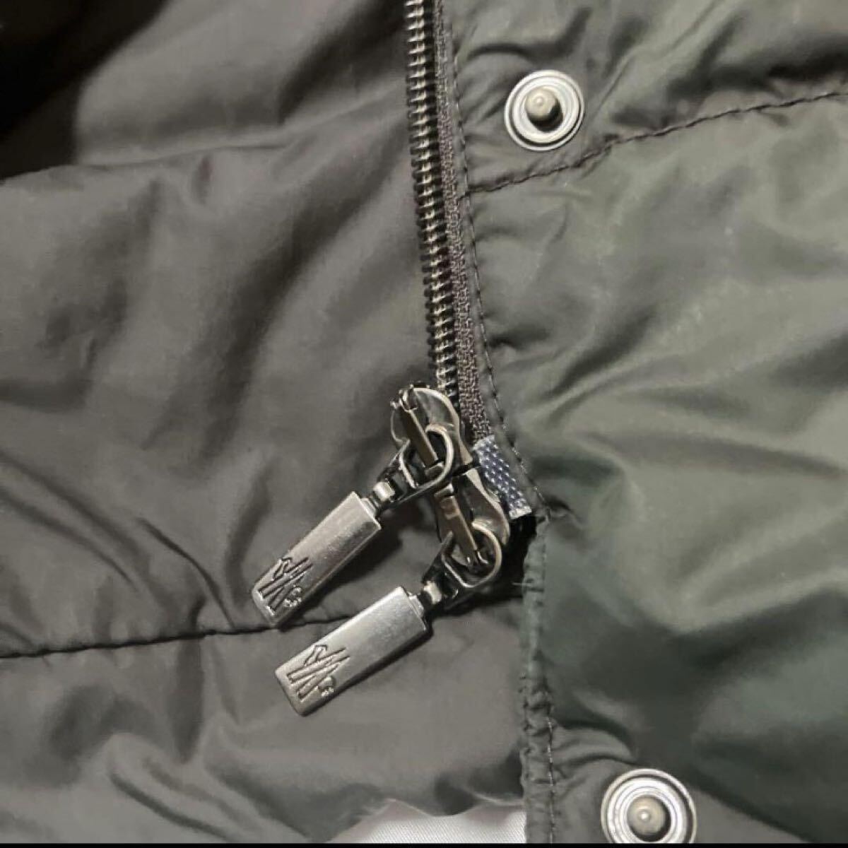 表面はオリーブグリーン、内側(脇線あたり)はダークブラウン系の配色です。モンクレール特有の高級感あるデザインです。