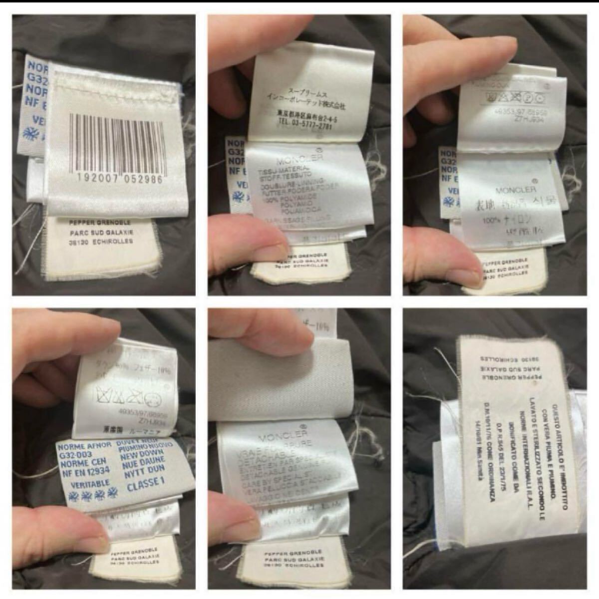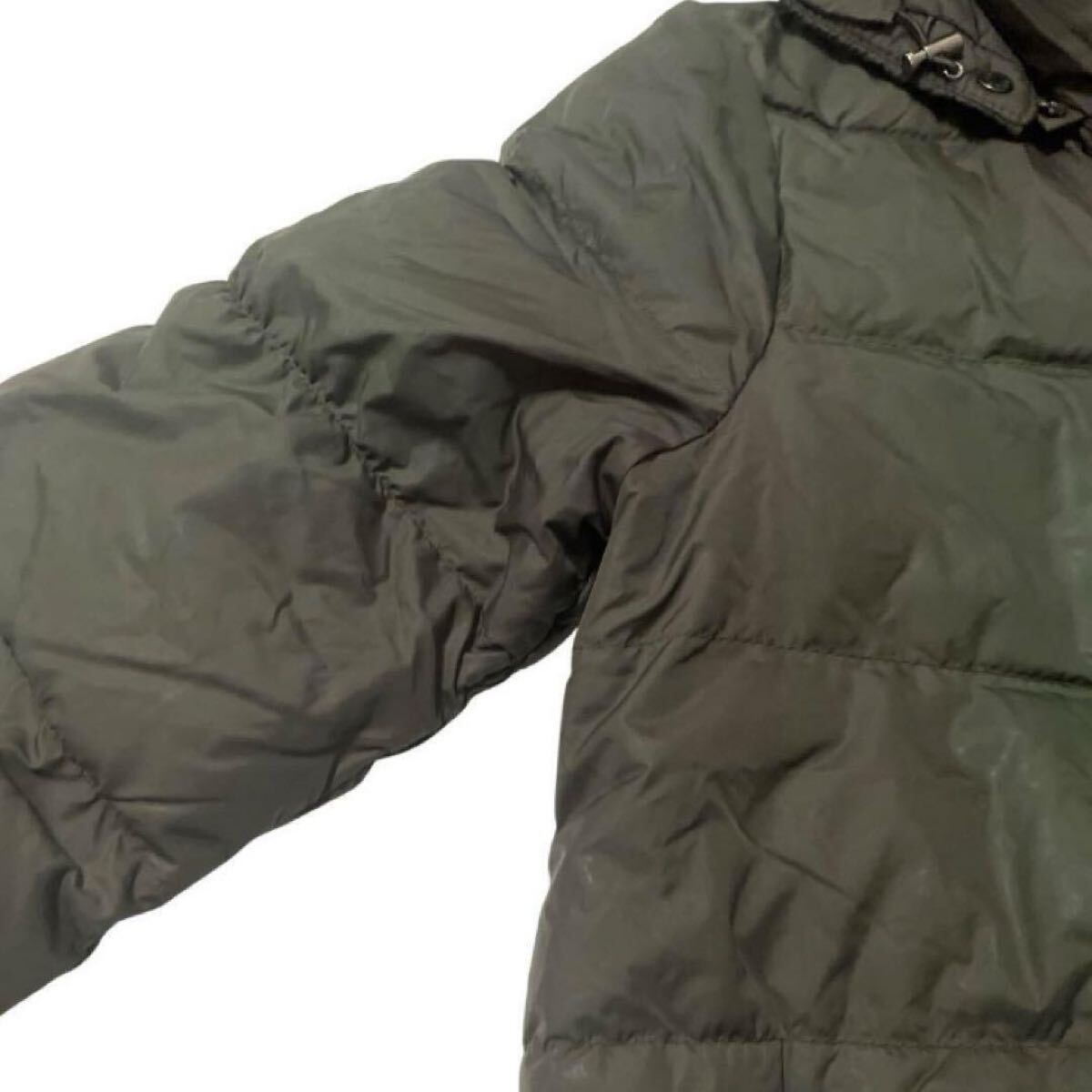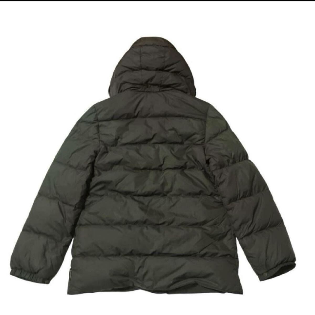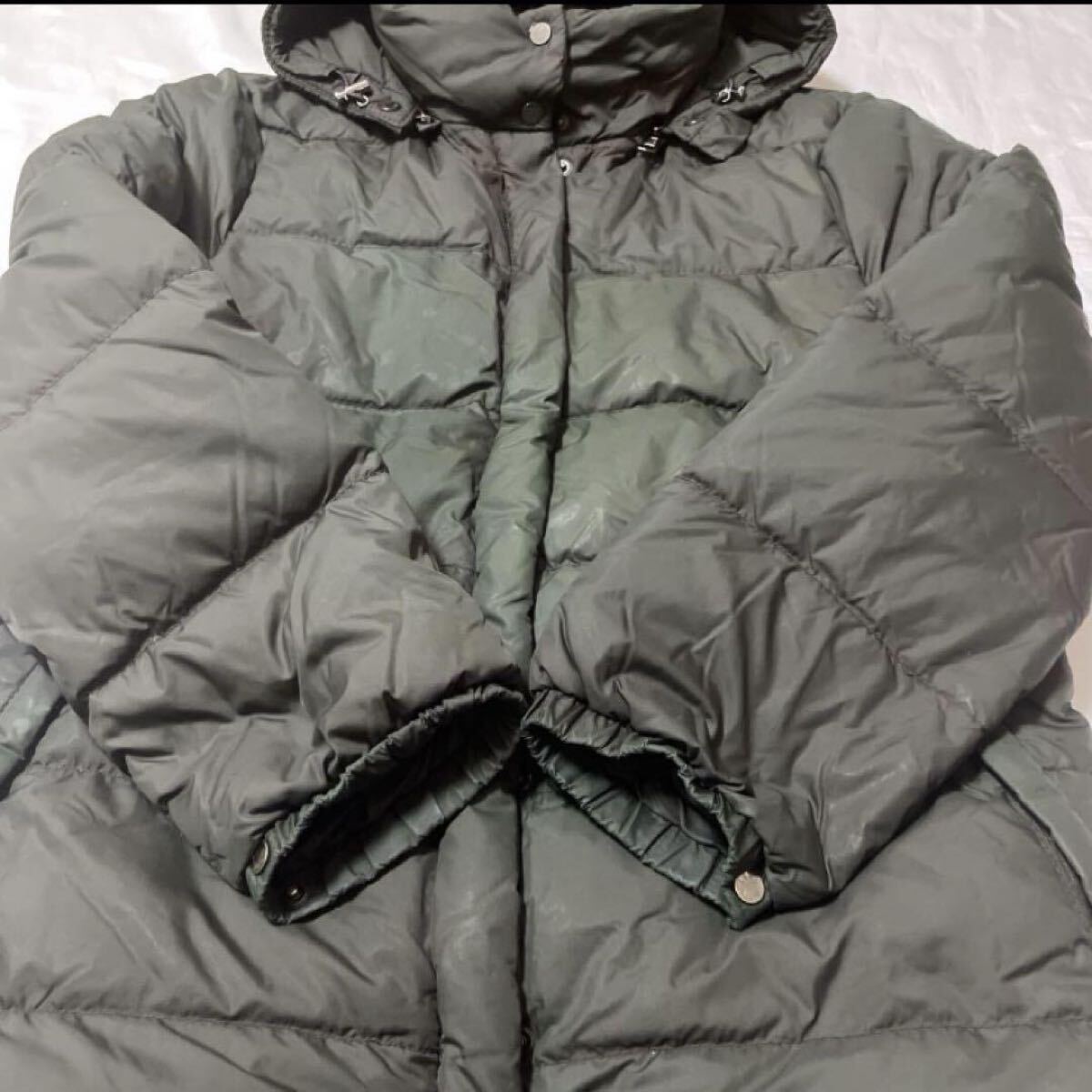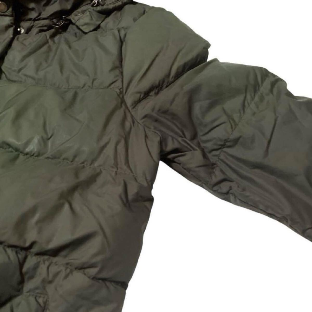 表面はオリーブグリーン、内側(脇線あたり)はダークブラウン系の配色です。モンクレール特有の高級感あるデザインです。