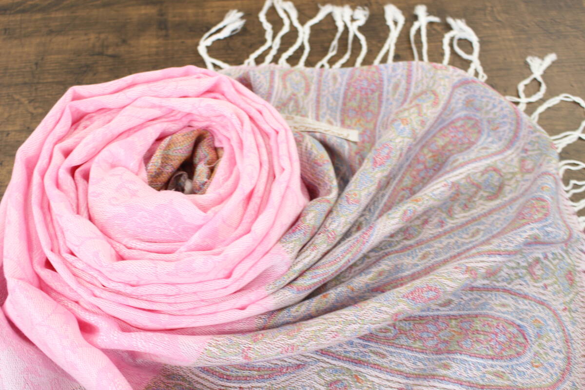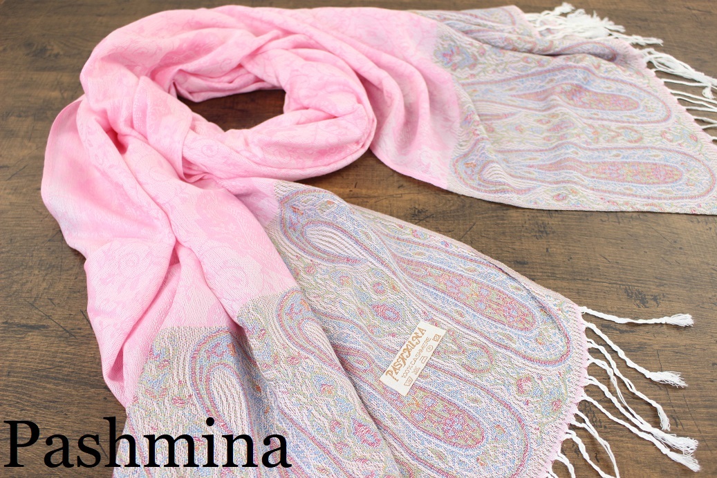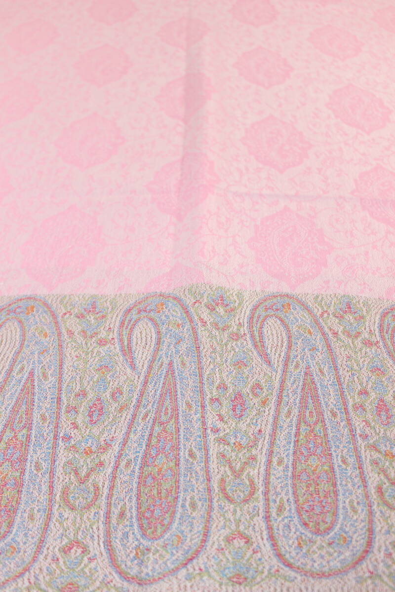 新品【パシュミナ Pashmina】ペイズリー×ツタ柄 ホワイト系マルチカラー×ライトピンク WHITE PINK 大判 ストール カシミア100% Cashmere