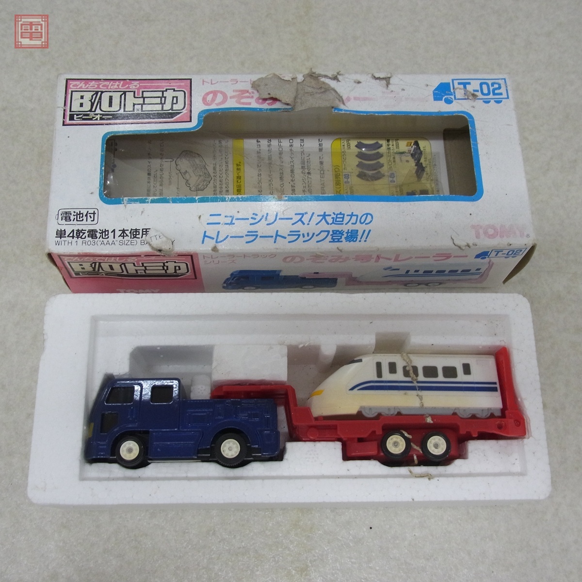 現状品 B/O トミカ T-02 のぞみ号トレーラー トレーラートラックシリーズ トミー TOMICA TOMY 動作確認済 ■こちらの商品は【現状品】として出品しております。 ■上記よりどの様な不具合が生じましても当店では交換・返金・返品等の対応はできません。 ■ご理解ご納得いただける方のみご入札をお願いいたします。 ■簡易動作確認済です。 ■外箱にイタミ、汚れ、変色、破れ、剥がれがあります。 ■ボディに汚れ、黄ばみ、固定ゴムの劣化があります。 ■発泡スチロールに汚れがあります。 ■写真のものが全てです。付属物の有無や状態については写真からご判断ください。 ■付属物については細かいチェックはしておりませんので、万が一、欠品があったり余計な物が入っていたとしてもご了承ください。 ■商品到着後、当店の保証期間中は、商品及び箱や取説、付属品などを1つでも廃棄や破損をしないようにお願い致します。廃棄や破損をした場合、商品に問題があった場合でも対応や返金などの対処ができなくなります。 ■商品によりますが、発売されてから10年以上経過している中古品である事をご理解頂いた上でご入札をお願い致します。なお、新品や美品、また特記事項がある場合は別途明記します。 | |||