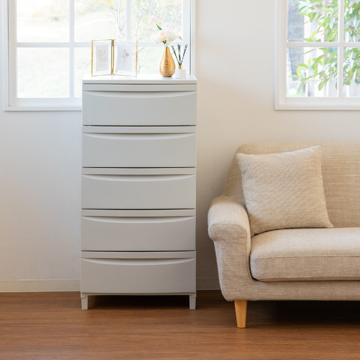 即決可@新品[日本製収納ケースプラスチック]脚付収納ワイドチェスト5段ルーセント545引き出し式衣類収納ケース/ミルクティーベージュ | ||||||||||||