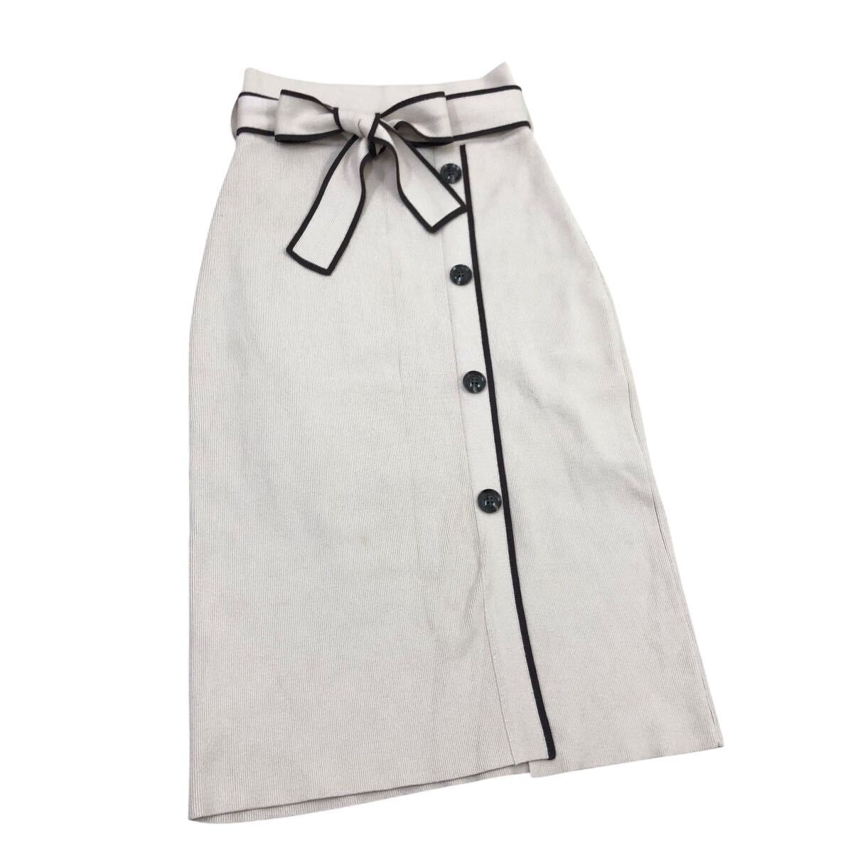 10Nm325-68 Rirandture リランドチュール フロントボタン デザイン ニット スカート ボトムス リボンベルト付き ベージュ レディース 1
