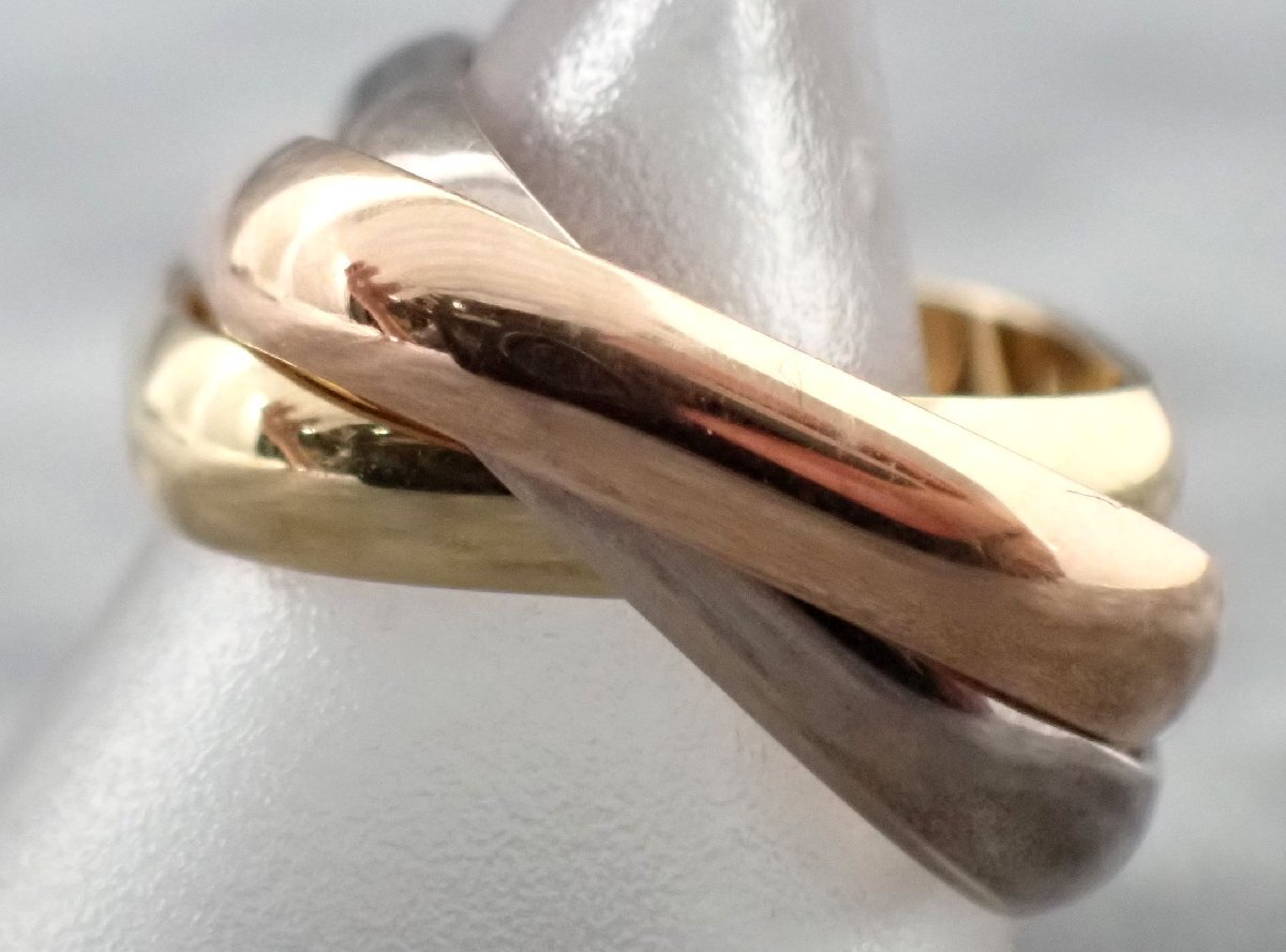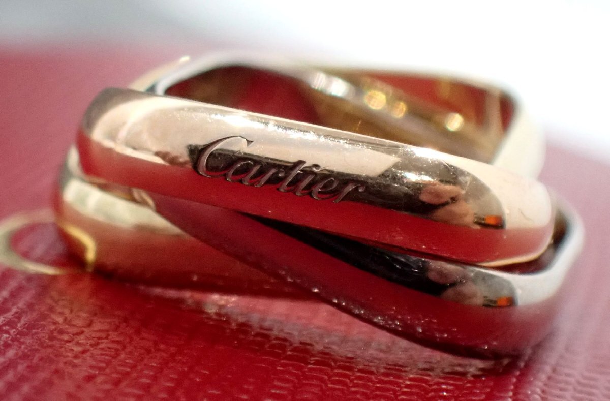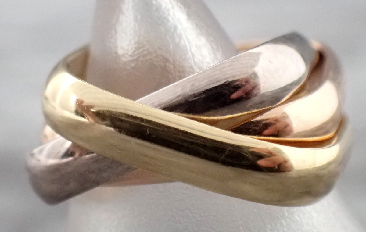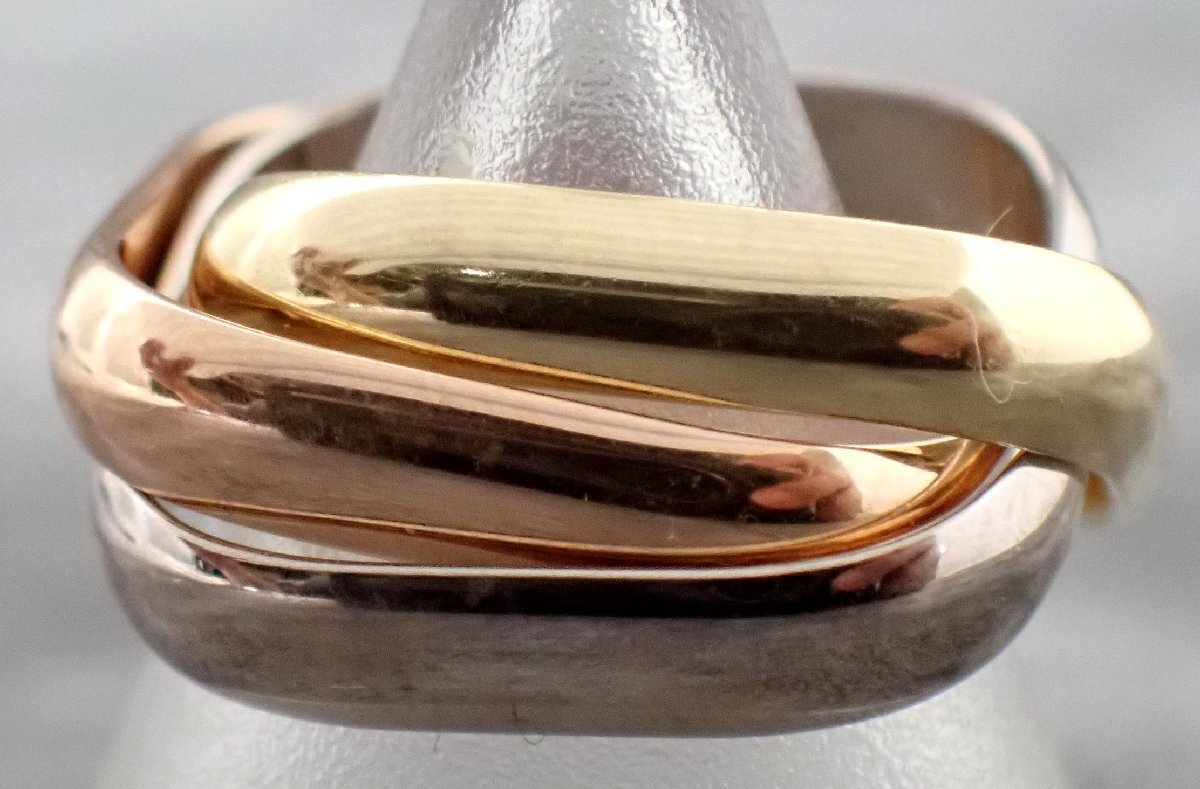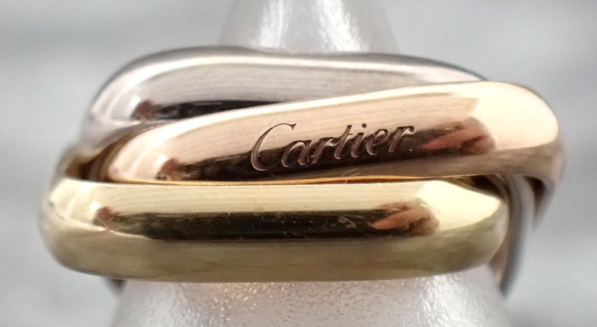 定価37万円ほど 極美品 カルティエ CRB4240647 K18スリーカラー 18金 トリニティ クッションリング 47 7号 スクエア リング 8.1g