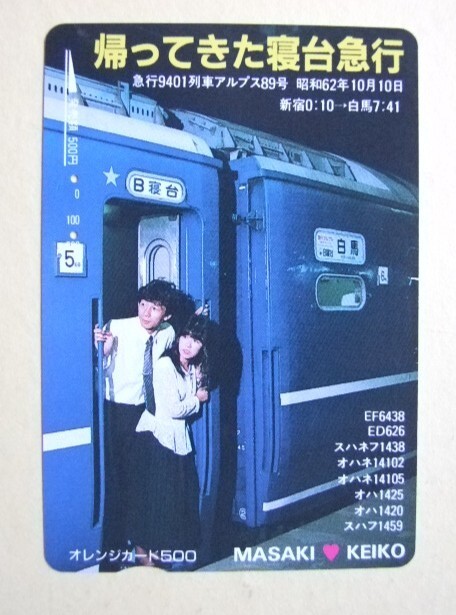 ◇オレンジカード 使用済 多穴券◇JR東日本 『帰ってきた寝台急行 急行9401列車アルプス89号 昭和62年10月10日』USED品 008712