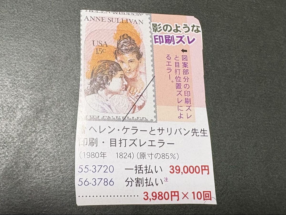 購入39,800円 アメリカ ヘレン・ケラー サリバン先生 印刷・目打ズレ エラー 切手 1980年発行 海外 世界