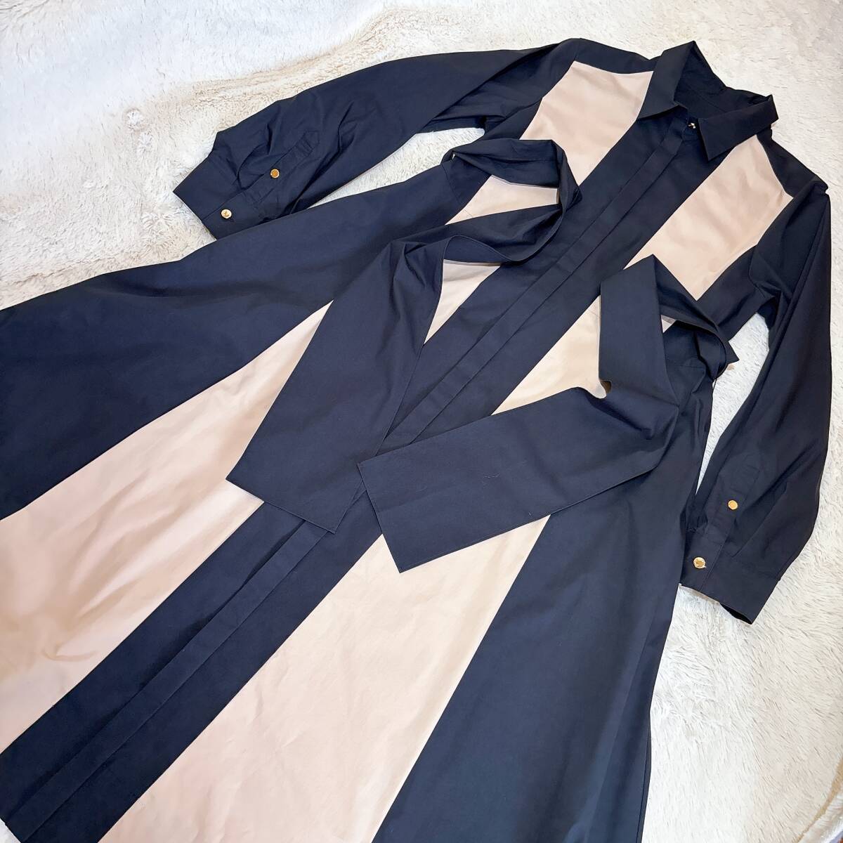 | C429美品!■グレースクラス★黒*ベージュ切替配色★マキシ丈ワンピース■38 | ||||||||||||||||||||