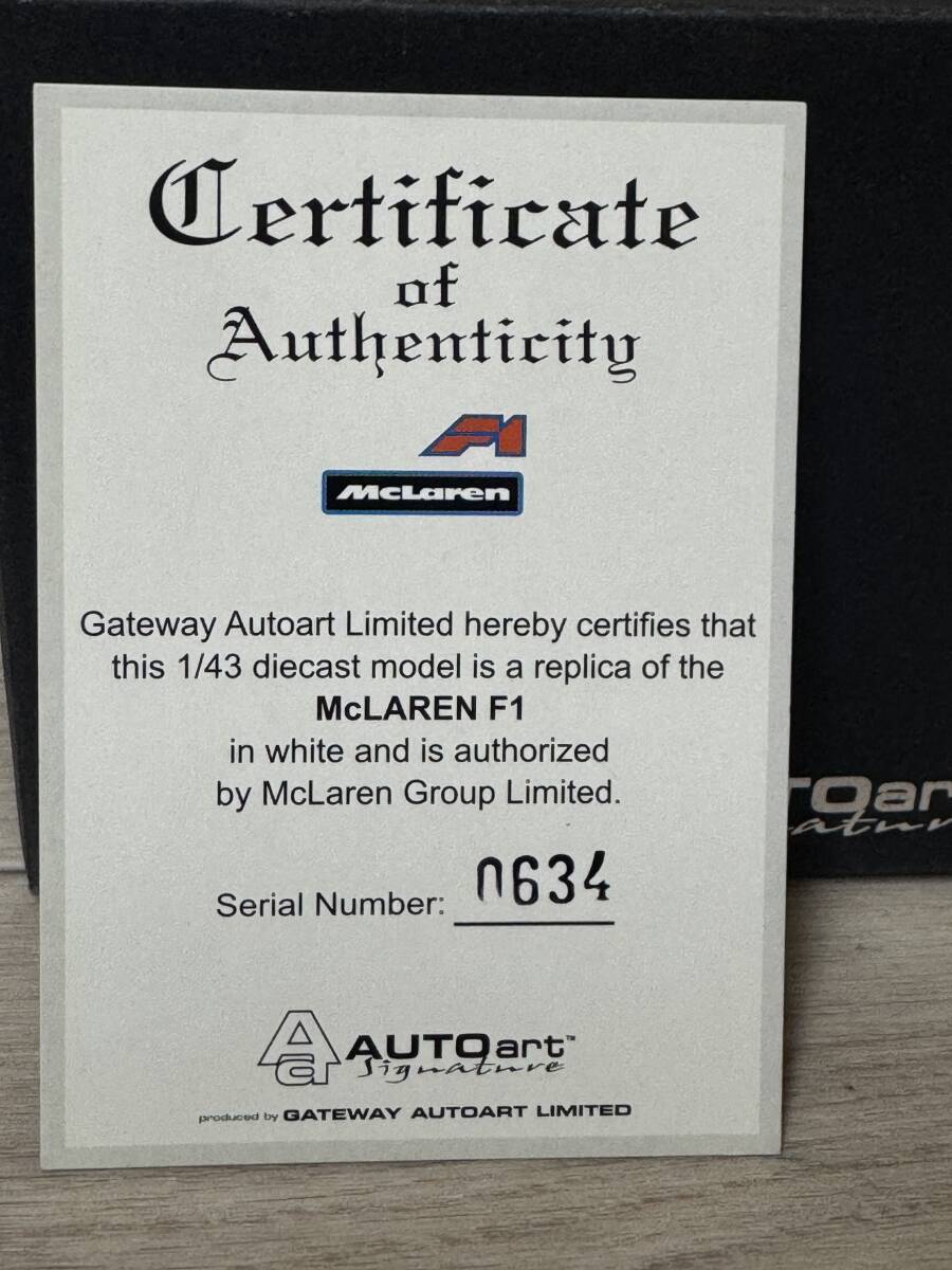 極美品 オートアート シグネチャー 1/43 マクラーレン F1 ホワイト 限定品 シリアルナンバーNo.0634 ミニカー