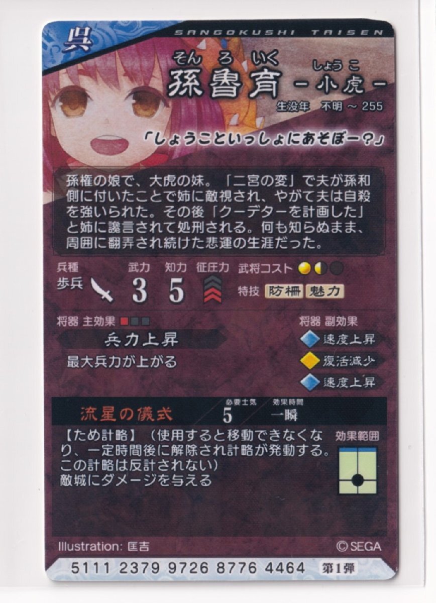 三国志大戦4 旧枠 呉 1弾 SR 小虎 流星の儀式 兵力上昇 コレクション用 【3子09】