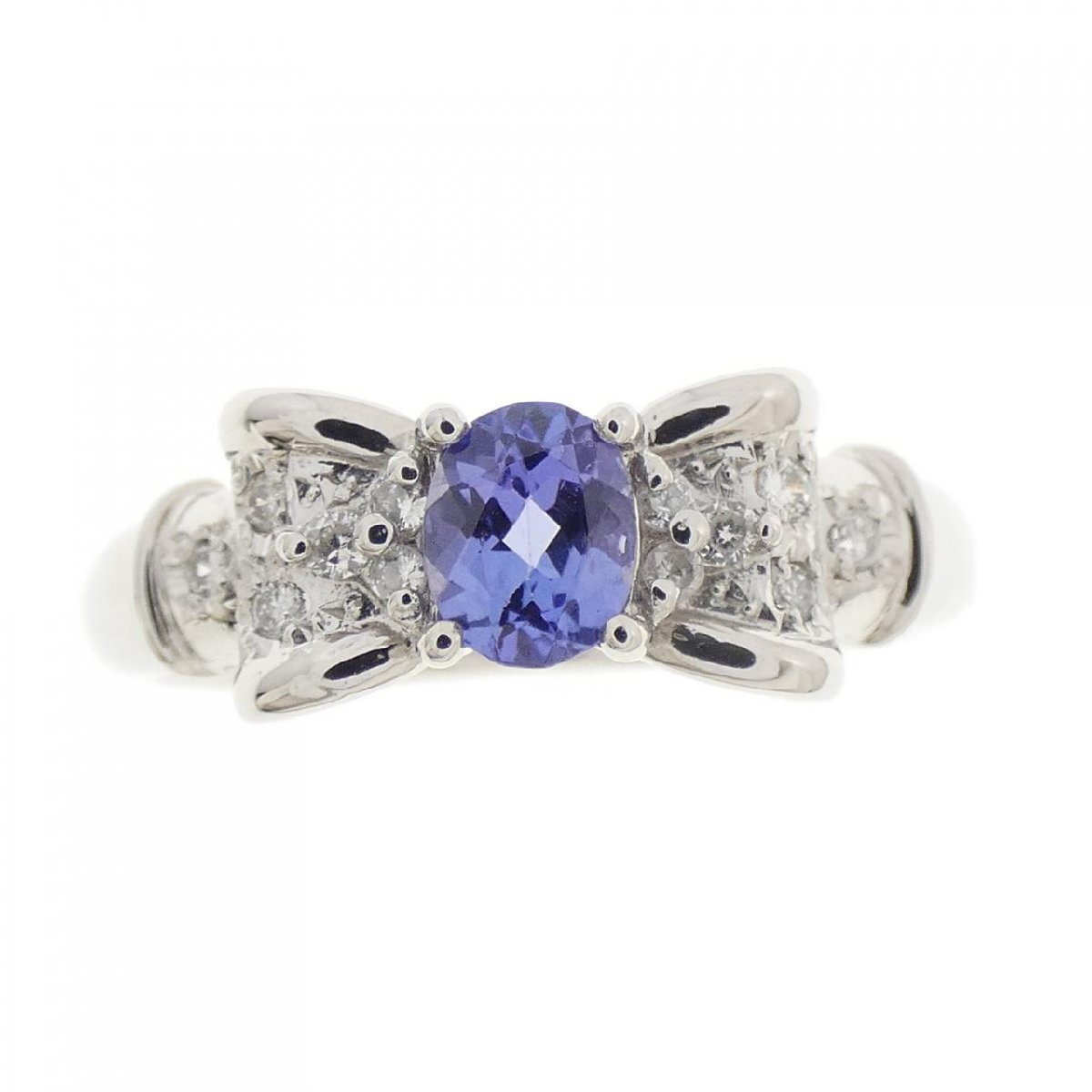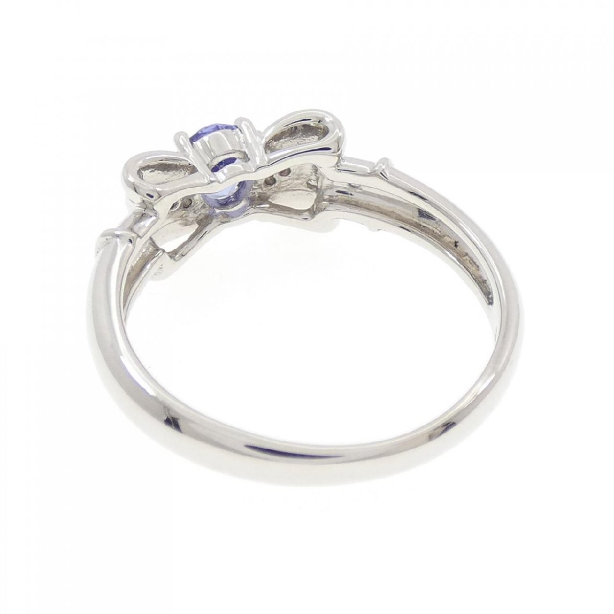 明るいブルーカラーのタンザナイトをダイヤモンドと共にセッティング。リボンのモチーフが可愛らしく指元を飾るリングです。