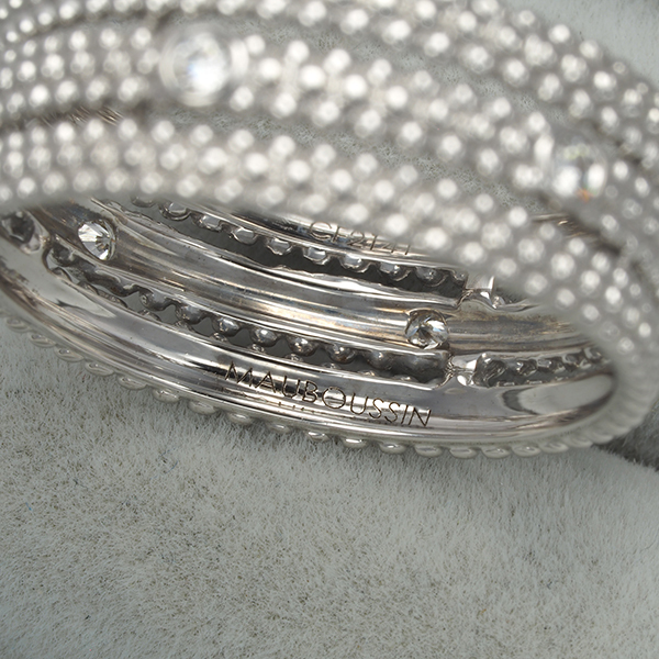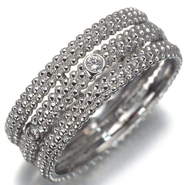 細やかなビーズデザインの煌めきが上品なサークルモチーフに上質ダイヤの輝きを飾った モーブッサン プルミエールジュールコレクションのジュエリー。装いをエレガントに演出してくれる素敵なお品ですよ。 |