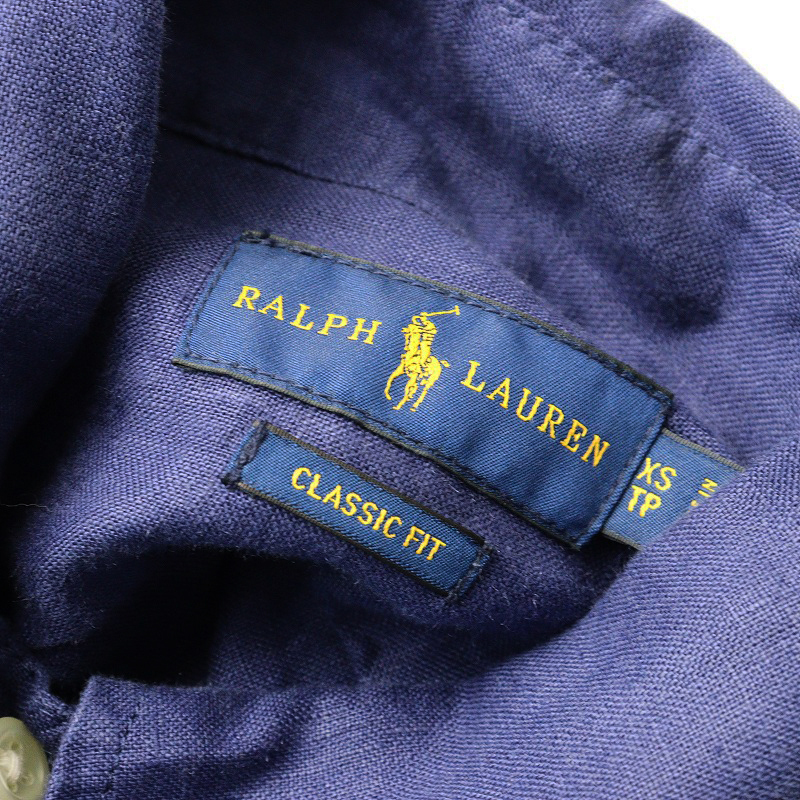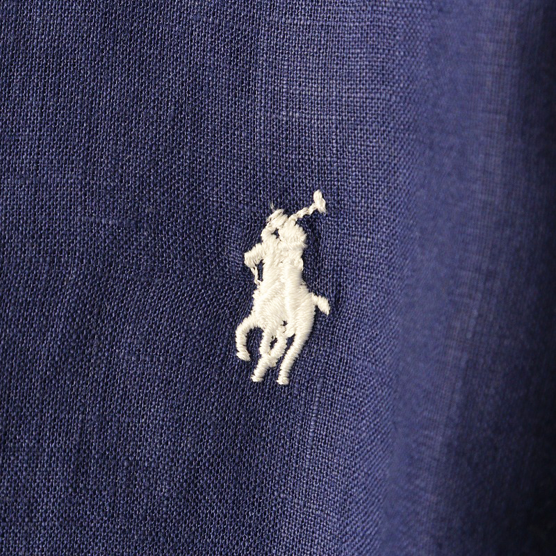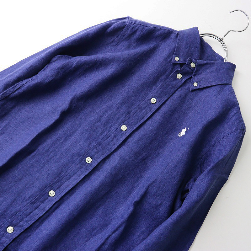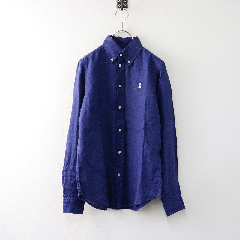 ラルフローレン RALPH LAUREN CLASSIC FIT ポニー刺繍 長袖リネンボタンダウンシャツ XS ネイビー┃ブラウス【2400014627114】