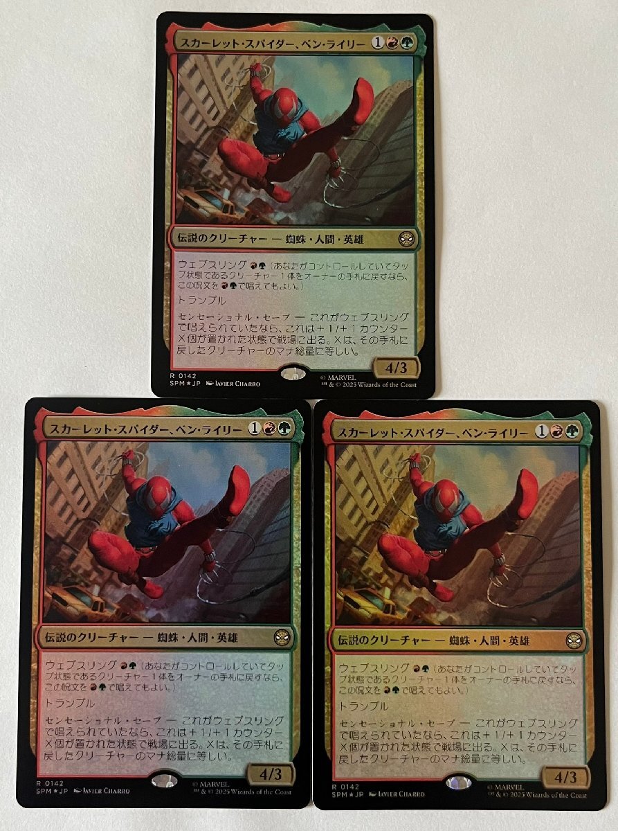 FOIL 多色▼ MTG ▼ マジック:ザ・ギャザリング マーベル スパイダーマン ▼ スカーレット・スパイダー、ベン・ライリー 3枚組