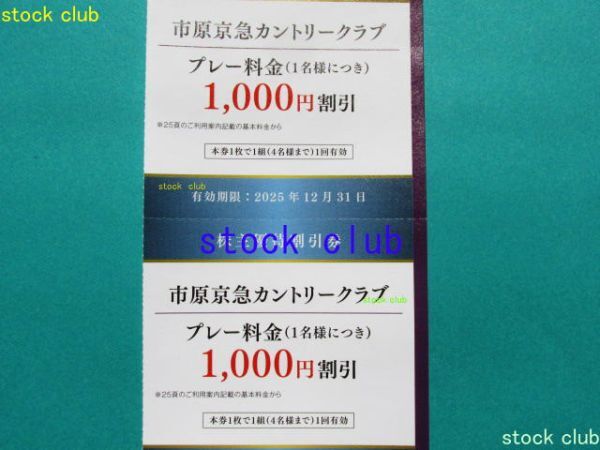 京浜急行電鉄主優待の株主優待券市原京急カントリー1,000円割引券2枚です。