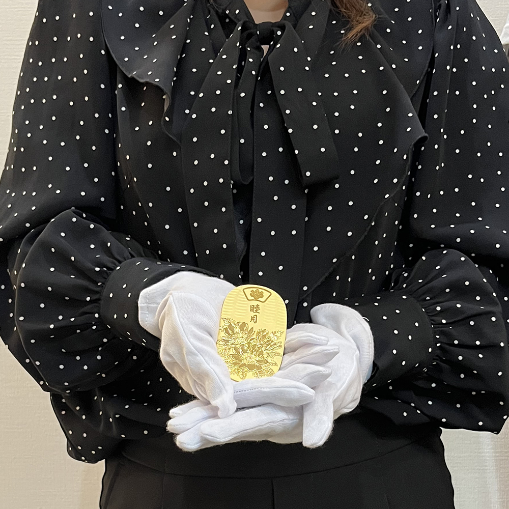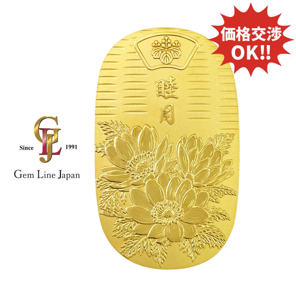 商品名 | 純金 100.20g K24検定マーク 花ごよみ小判 睦月 福寿草 光則作 | ||