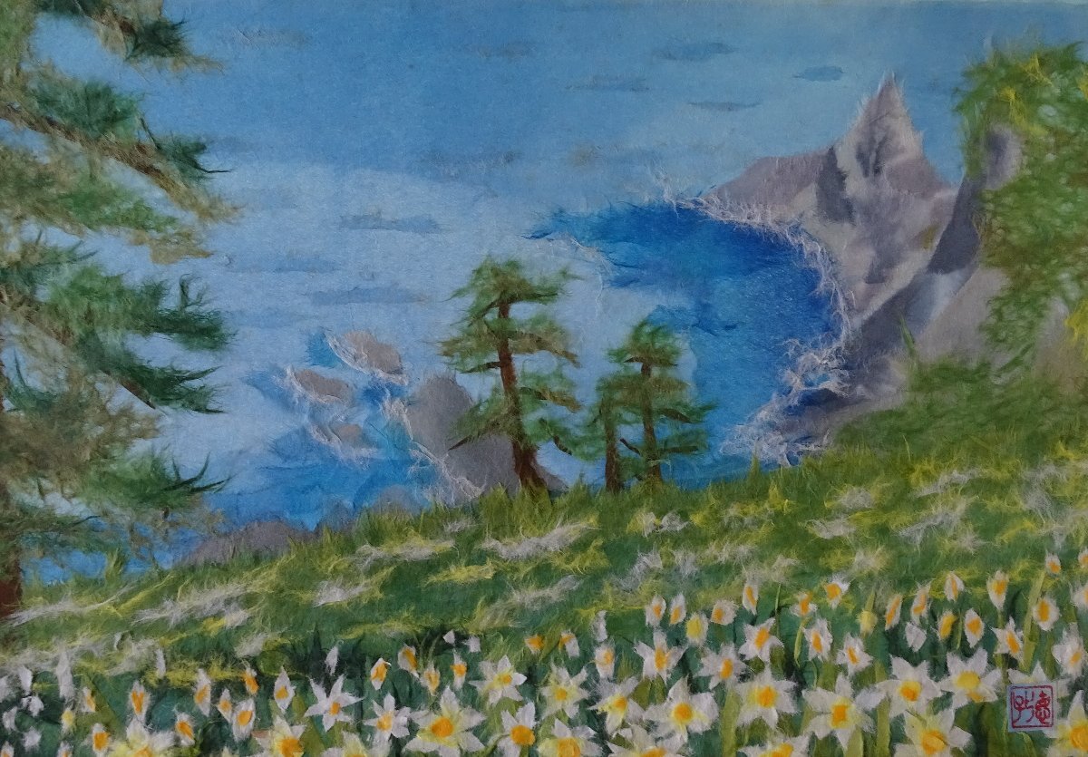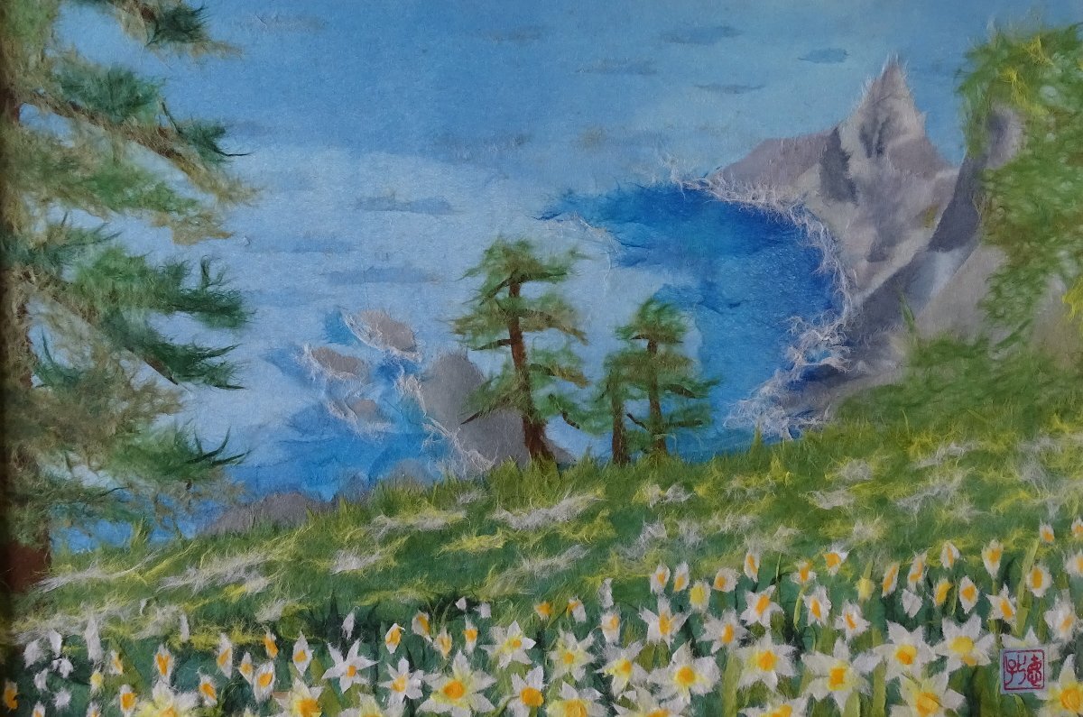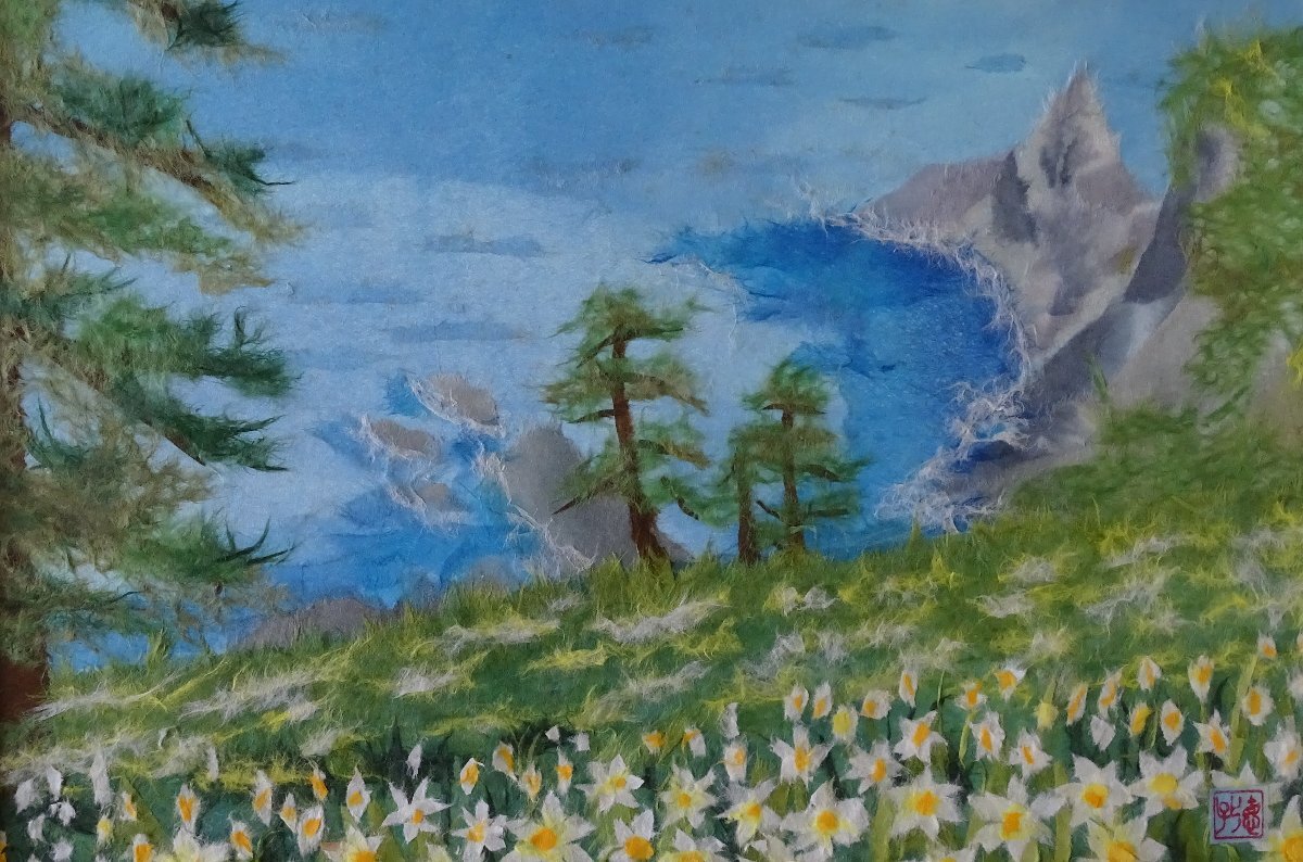 ・作者: 寺田作品 ・画題: 風景 ・技法: 貼り絵 ・NO-R-6-3-9.8