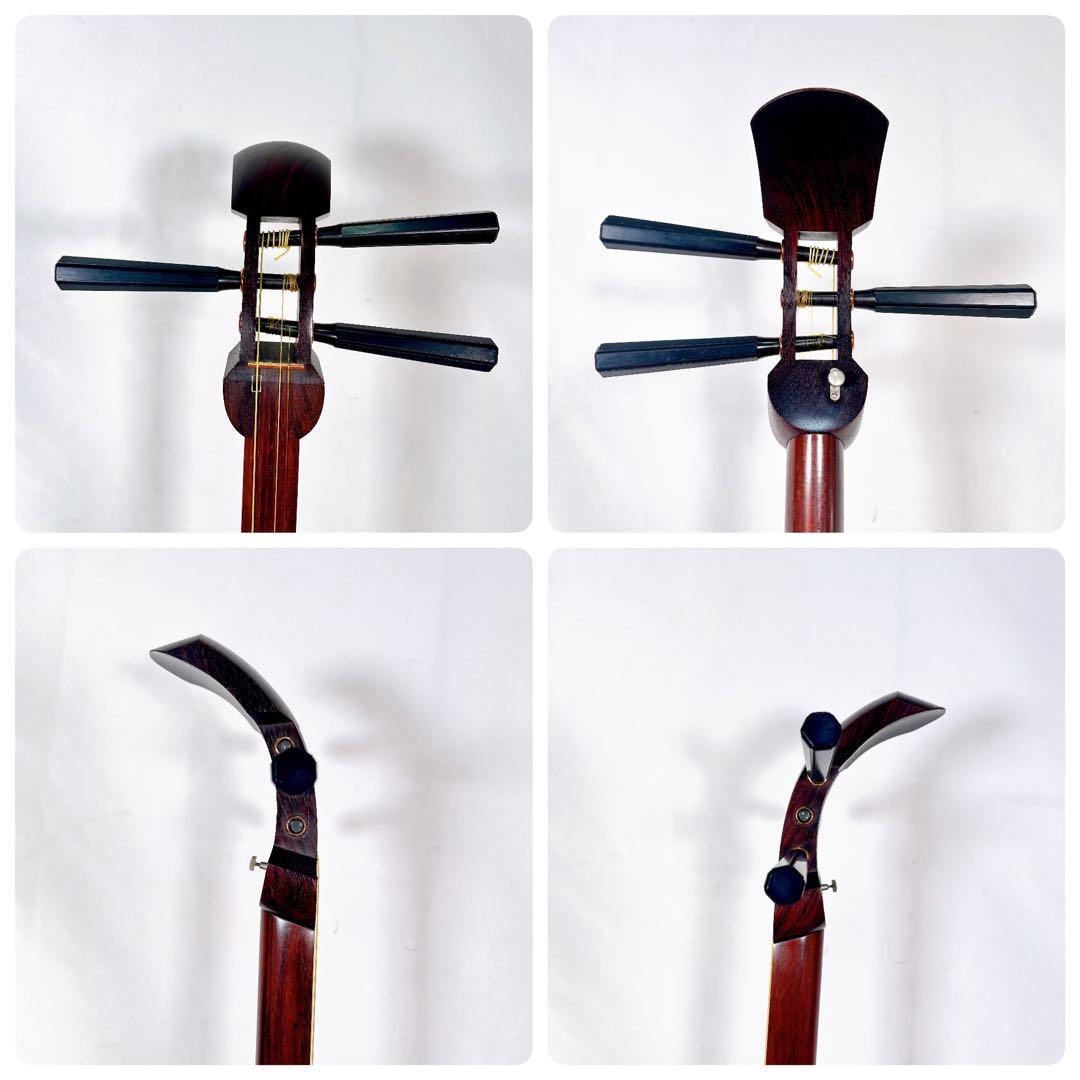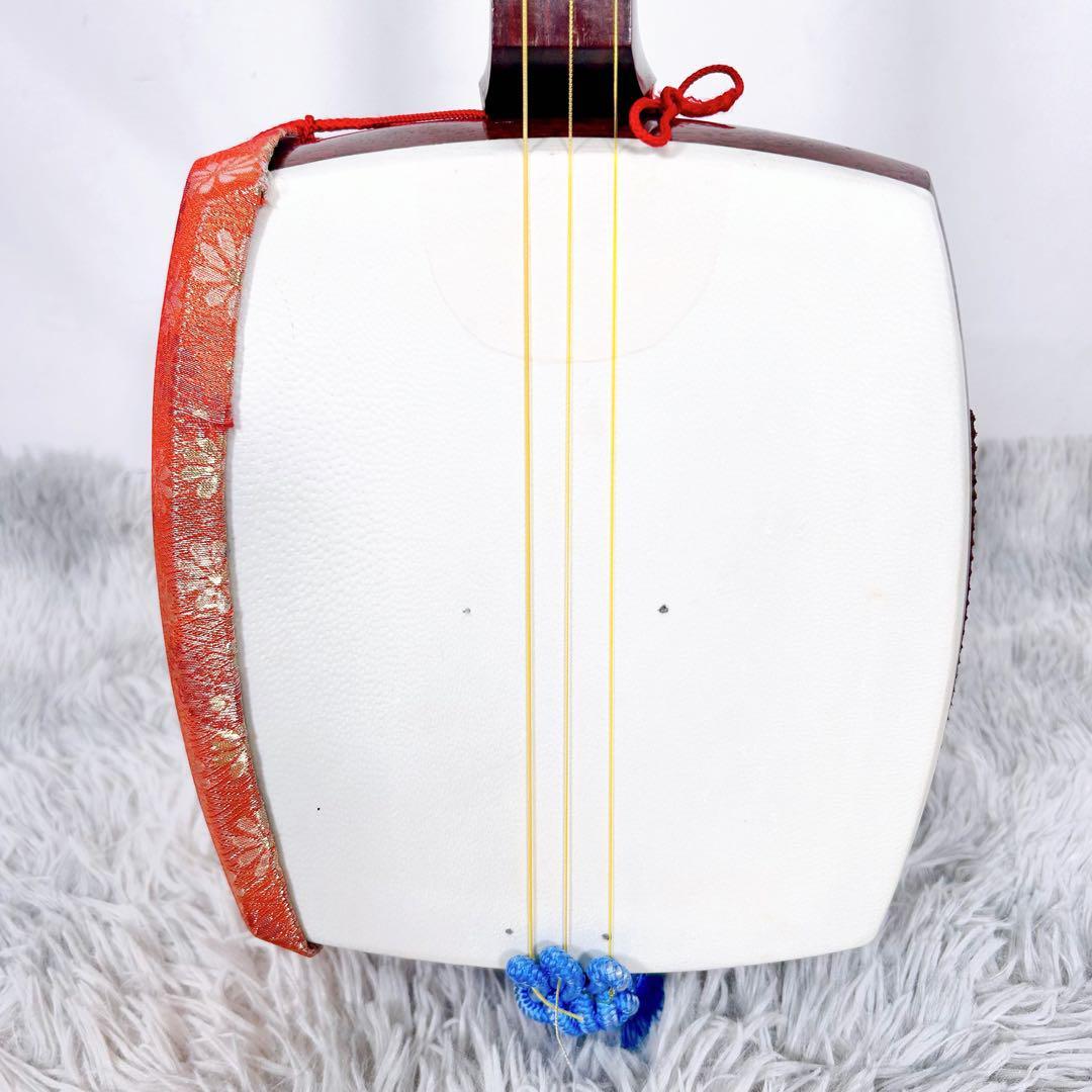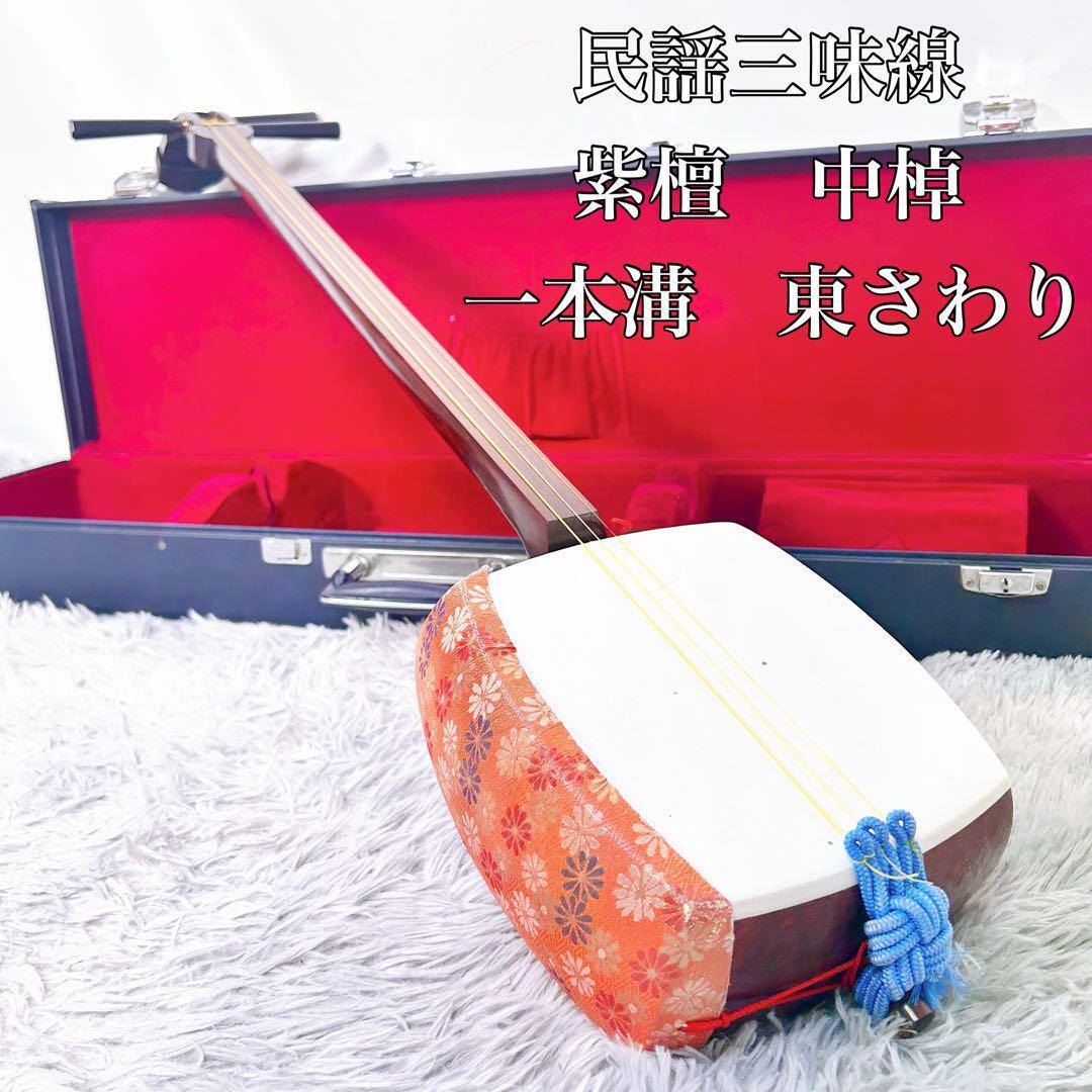 民謡三味線 中棹 紫檀 正寸 丸打胴 本皮 一本溝