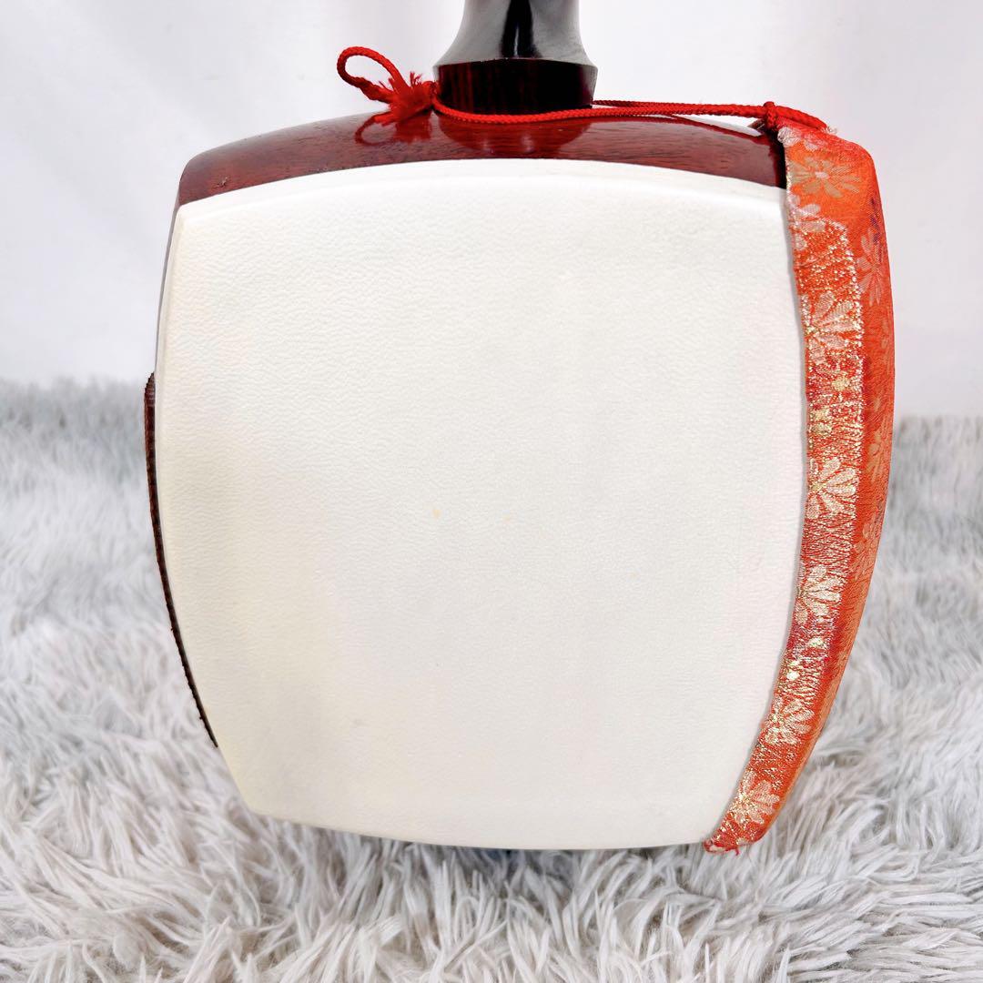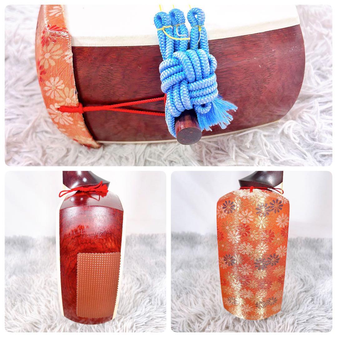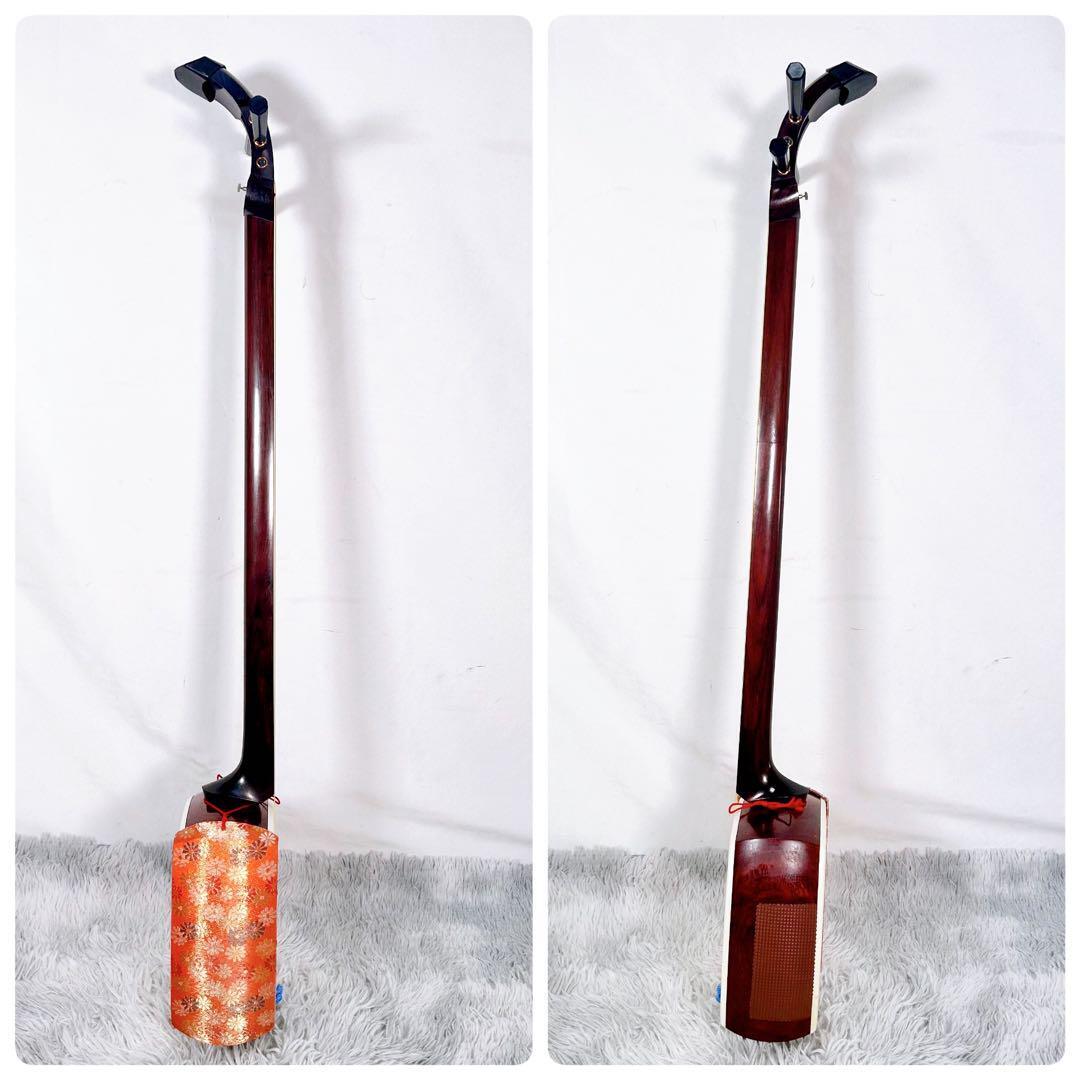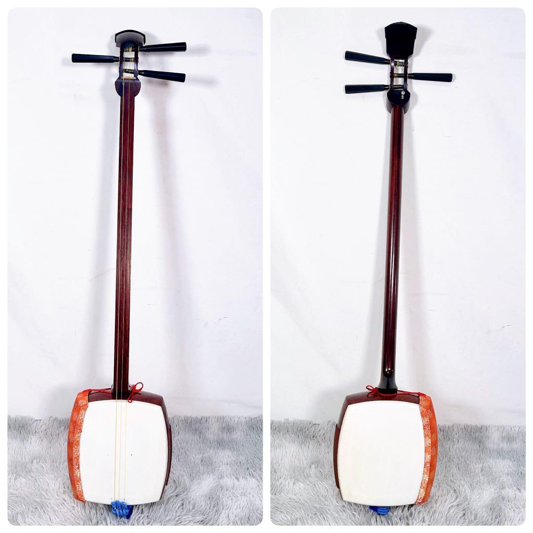 民謡三味線 中棹 紫檀 正寸 丸打胴 本皮 一本溝