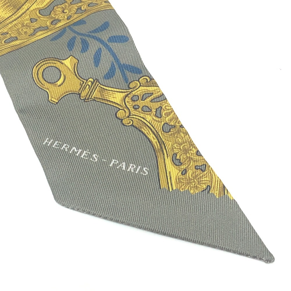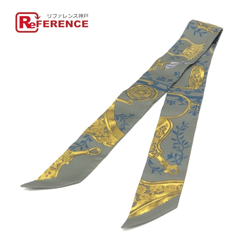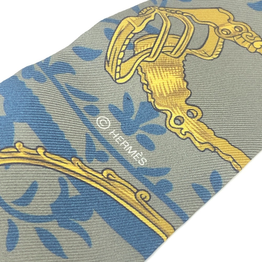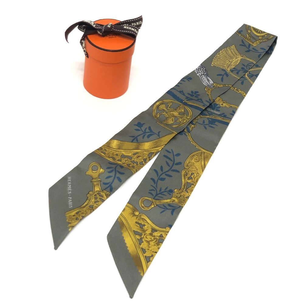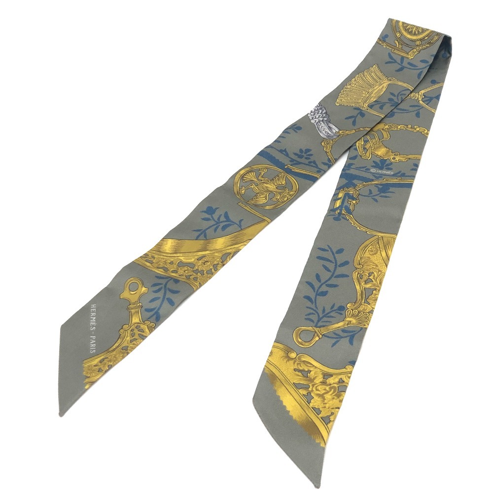 美品 HERMES エルメス ツイリ― 鎧 リミックス 小物 Etriers Remix Twilly スカーフ グレー レディース【中古】