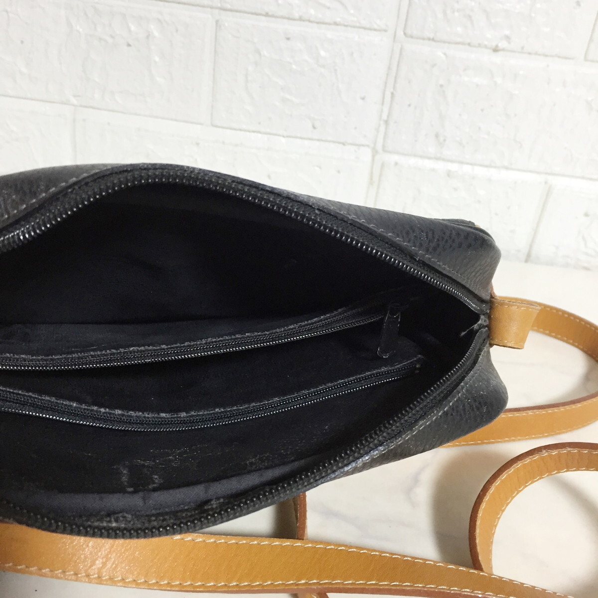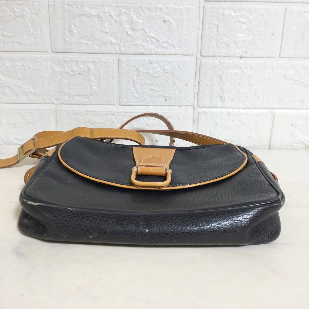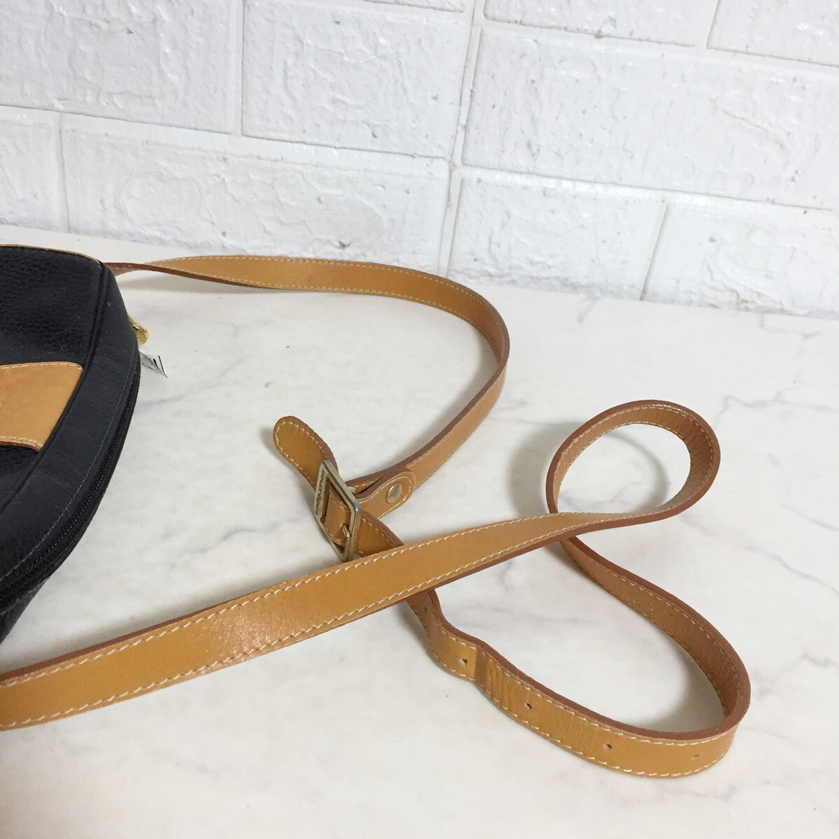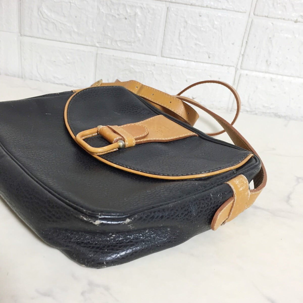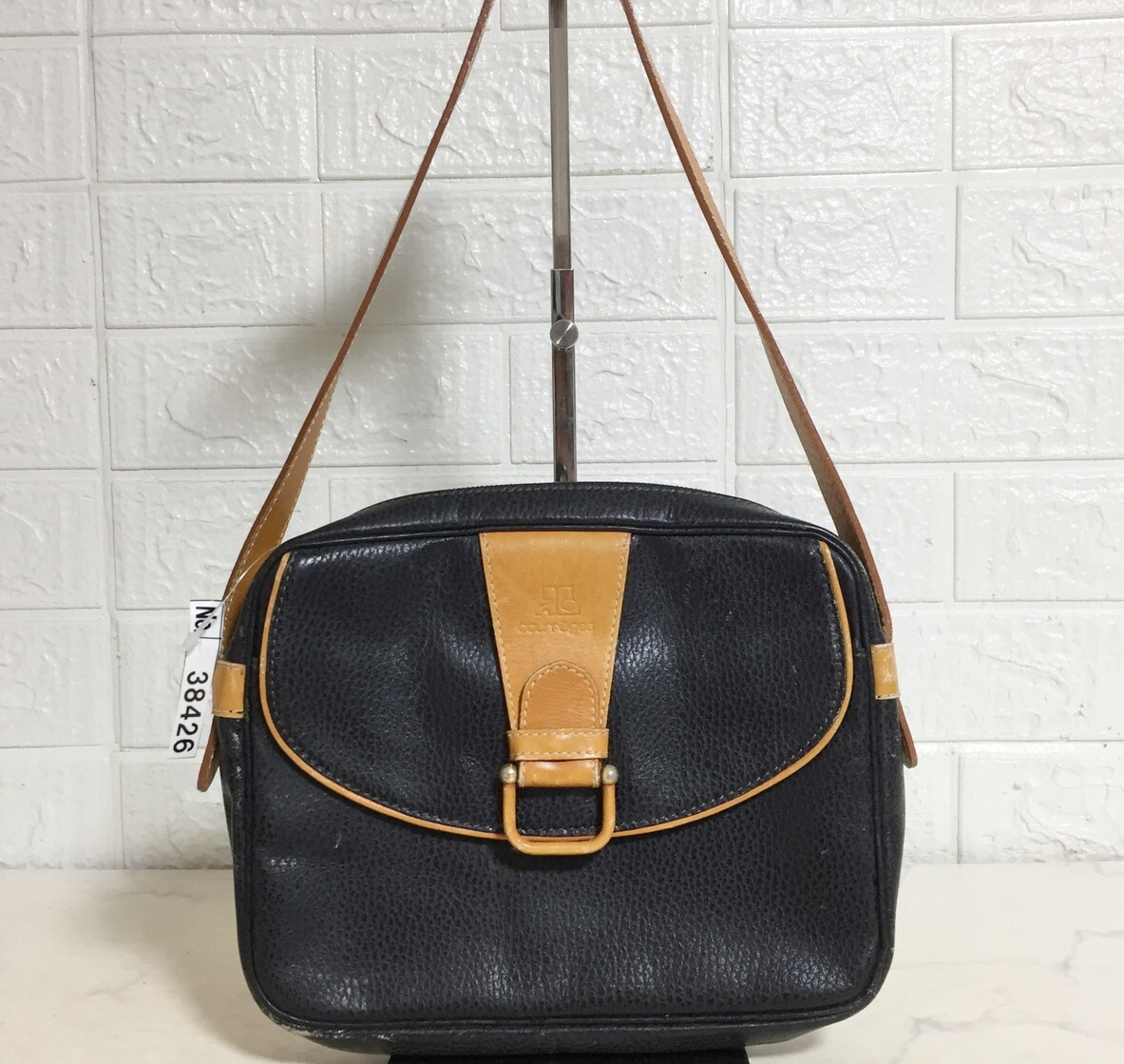 no38426 -G Courreges クレージュ フランス製 ヴィンテージ レザー 斜め掛けショルダー バッグ