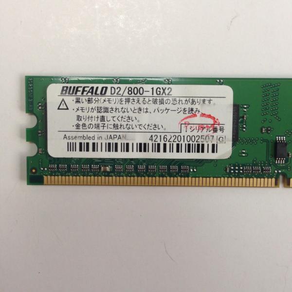 | ★商品説明★ | 取引トラブルを防ぐ為、必ずこちらへアクセスして下さい。 写真は使い回しとなりますので、実際にお送りするものはラベル・チップ等が異なる場合も御座います。 ■仕様一覧 デスクトップPC用メモリー ※メーカー:Buffalo ※状態:中古品 ※容量:1GB ※メモリータイプ:DDR2-800 ※チップ規格:PC2-6400 ※数量:1枚 ご注意:こちらの商品は動作確認済となりますが、パソコンとの相性は保証致しませんので、よく適用機種をご確認の上、ご購入をご検討下さい。 相性保証の商品につきましては、メールにてお気軽にお問い合わせ下さい。 | |
