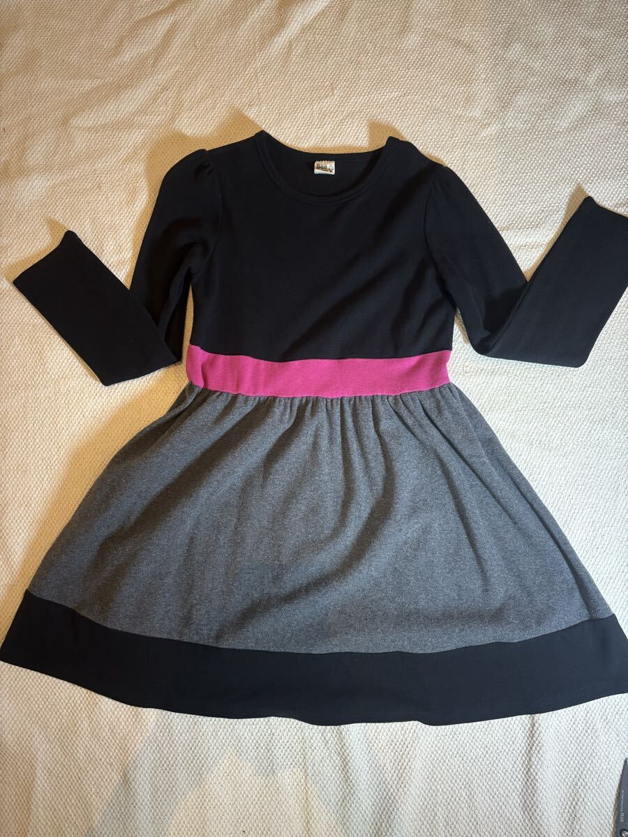 Aラインワンピース 韓国子ども服 140cm 長袖 ウエストピンク
