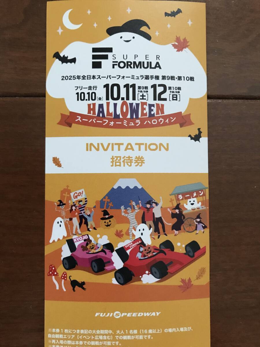 10/11土曜、10/12日曜に開催される2025年 全日本スーパーフォーミュラ選手権 第9戦第10戦 富士スピードウェイ 招待券 1枚です。入場可能エリアは自由観戦エリアのみとなりますが、二日間ご使用頂けます。