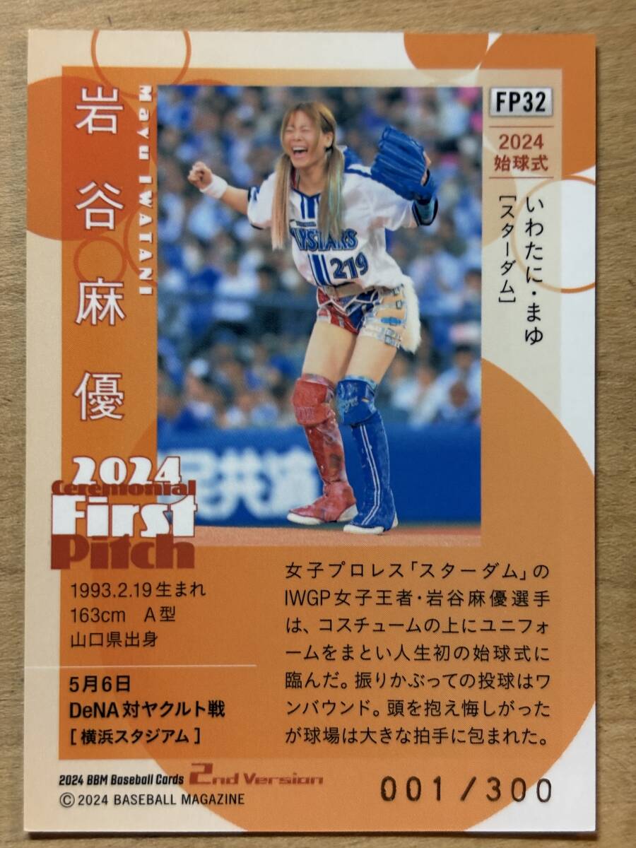シリアル1番!岩谷麻優 スターダム 2024BBMセカンドバージョン 始球式記念カード 300枚限定ハートパラレル