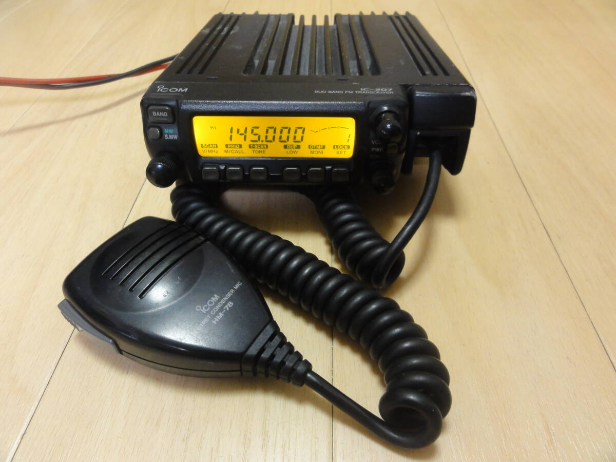 アイコムの144/430Mhzデュオバンドモービル機IC-207になります。変調含め送受信確認済みです。出力はダミーロード装着で定格の144Mhz約220W、430Mhz約21Wです。外観は傷汚れありますのでご承知おき下さい。
