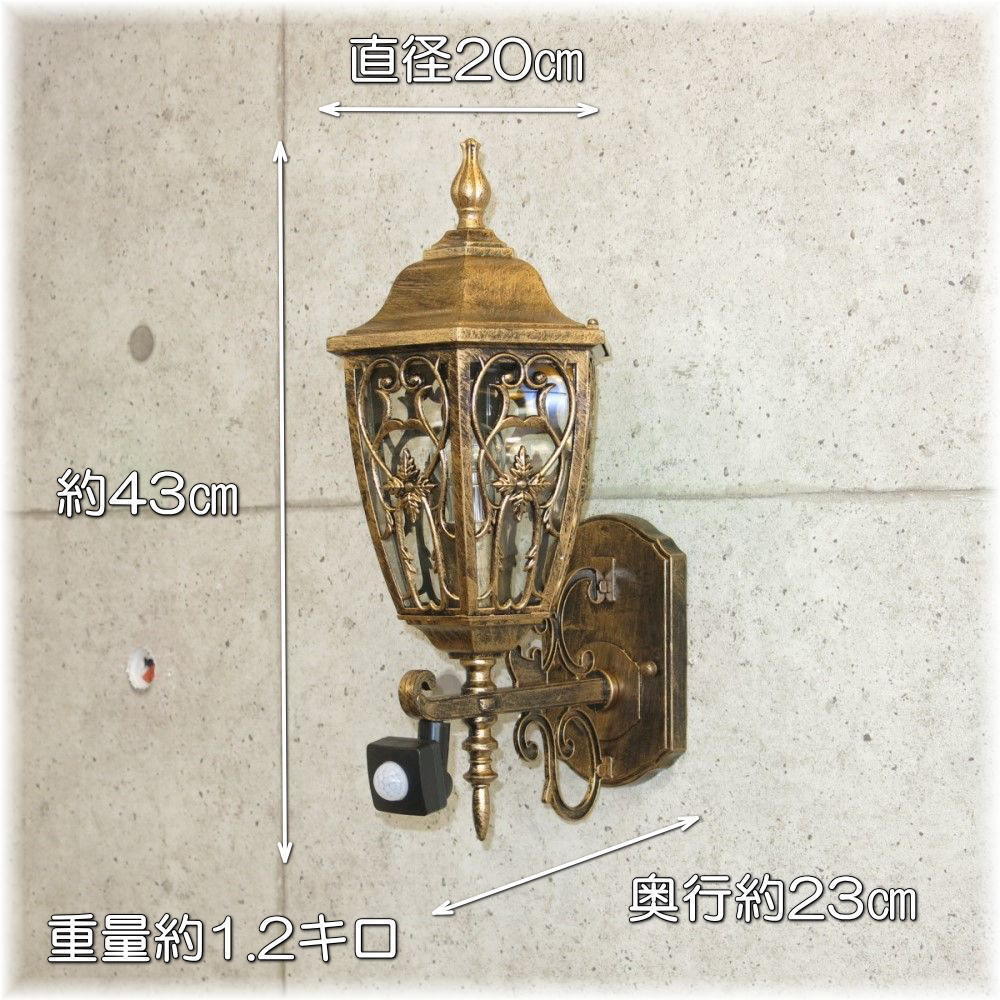 ![]() 【送料無料!】新品 アンティーク調 人感&デーライトセンサー搭載 ポーチライト LED付き 玄関灯 門灯 ☆明るさ約40ワット消費電力4ワットのLED電球(¥1400-相当)をお付けいたしまして驚きのプライス! 【送料無料!】新品 アンティーク調 人感&デーライトセンサー搭載 ポーチライト LED付き 玄関灯 門灯 ☆スタイルはシンプルなアンティーク調の屋外用ポーチライトです ☆アンティーク調で高級感が有り消灯時もご家庭のインテリアとして最適です ☆人感センサー&デーライトセンサーで自動感知点灯し下記内容で調整可能です ☆人感センサー・・・3~5メートル調整可能 ☆点灯時間・・・1~120秒調整可能 ☆デーライトセンサー・・・15~45ルクスで点灯調整可能 ☆サイズは高さ約43cm 幅約20cm 奥行約23cm 重量約1.2キロです ☆シンプルデザインのアンティーク調ポーチライトを超特売価格で是非この機会に! ☆付属電球・・口金E26広角LED(明るさ約40ワット消費電力4ワット・白色40lm/W 暖色36lm/W)暖色又は白色1個 ☆点灯時のイメージ画像を参考にLED発光色(白色又は暖色)をお選びください ☆完全防水ではございませんが水滴等がガラスシェード内に侵入した場合は、ポーチライト底に排水口が有り、そちらより排水されます ![]() | |