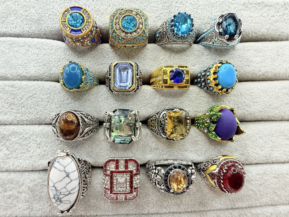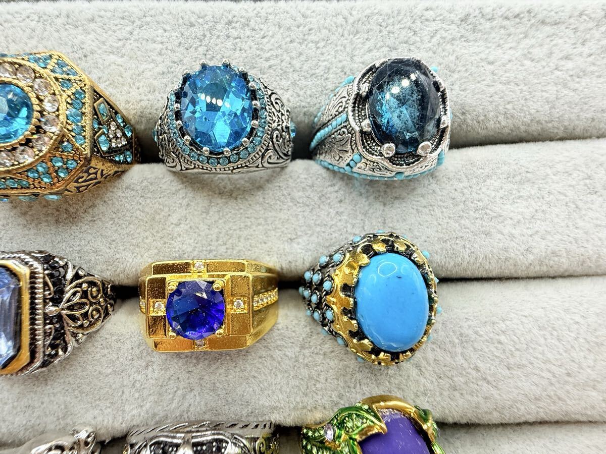 天然石、ジルコニア 、カラーストーン、色ガラス、ゴールド、シルバー、ステンレス、真鍮など様々です。