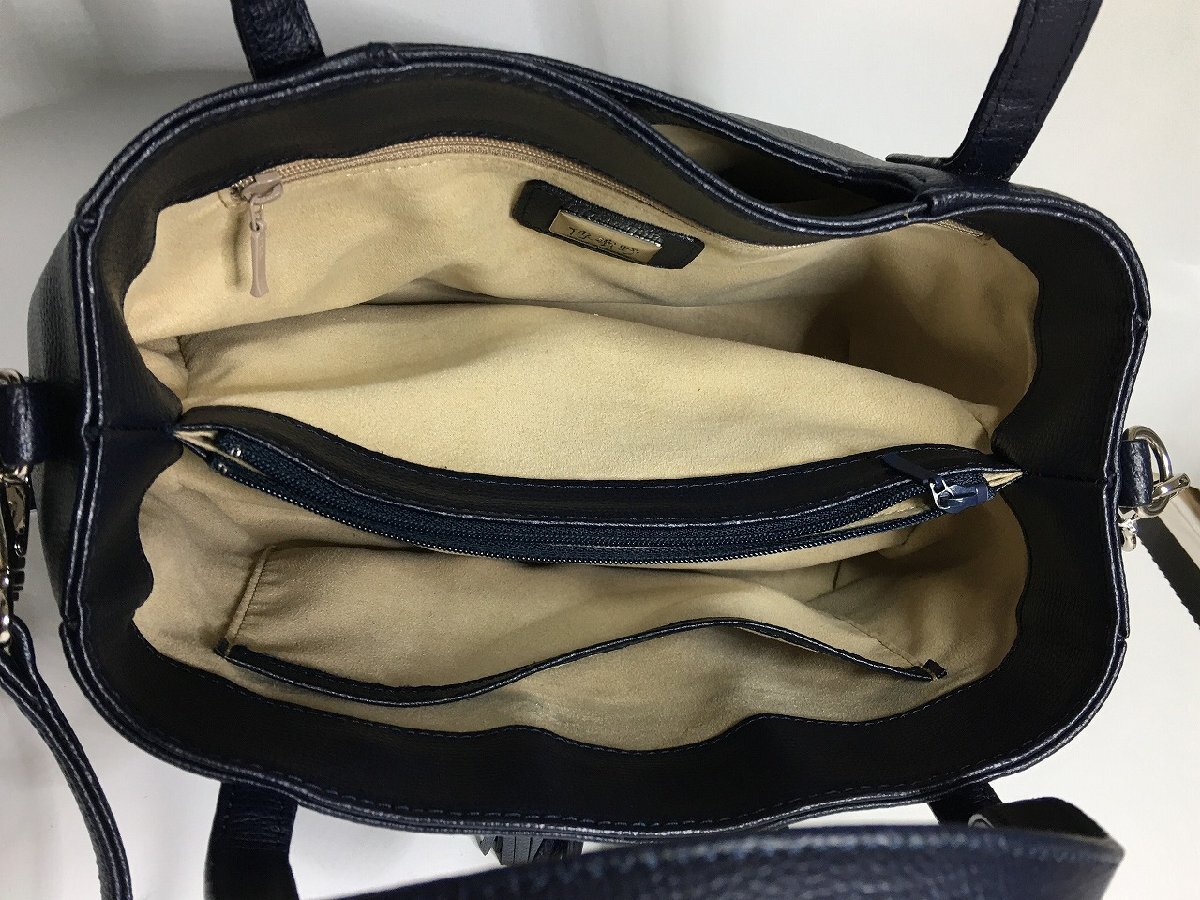 傳濱野/デンハマノ トートバッグ/ショルダーバッグ/ハンドバッグ 2way モーナピッコ リボン レザー ブラック 中古美品-D2210