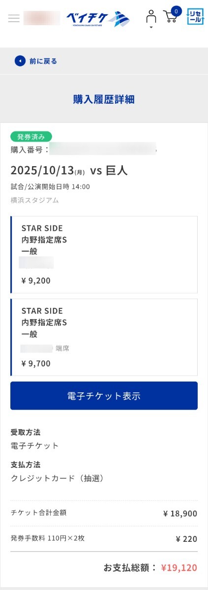 10/13(祝) クライマックスファースト第3戦 横浜DeNAベイスターズvs読売ジャイアンツ 内野S指定席STAR SIDE(3塁側)端席含む 連番計2枚 横浜スタジアム 14時00分 試合開始 定価以下スタート!