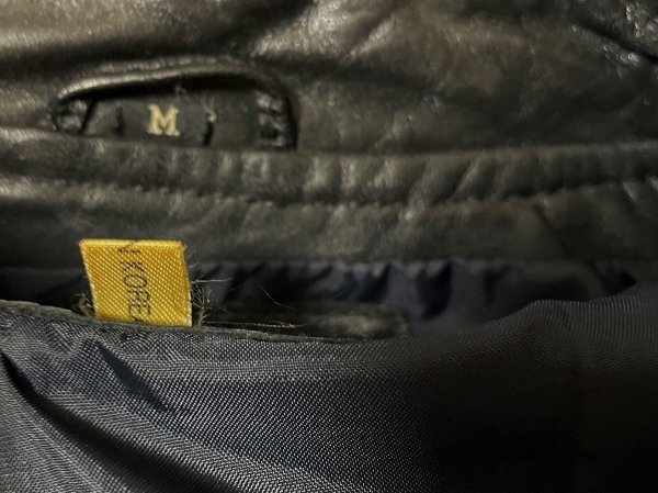 【90s位 韓国製 デザイン 風合い◎】ビンテージ カウレザー リブ切り替えデザイン JIN CLUBBY レザー ジャケット ライダース M ブラック