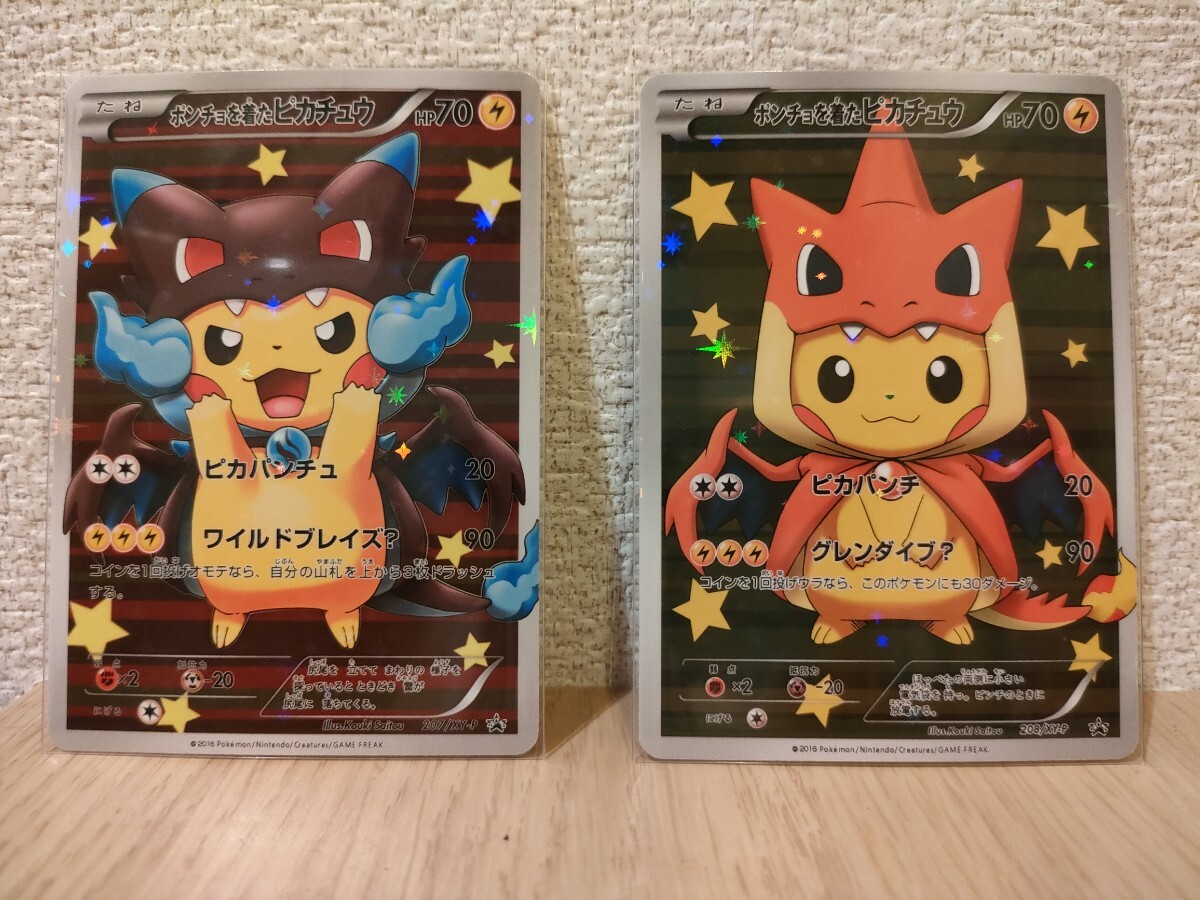 ポンチョを着たピカチュウ リザードンX、リザードンYの2枚セットです。