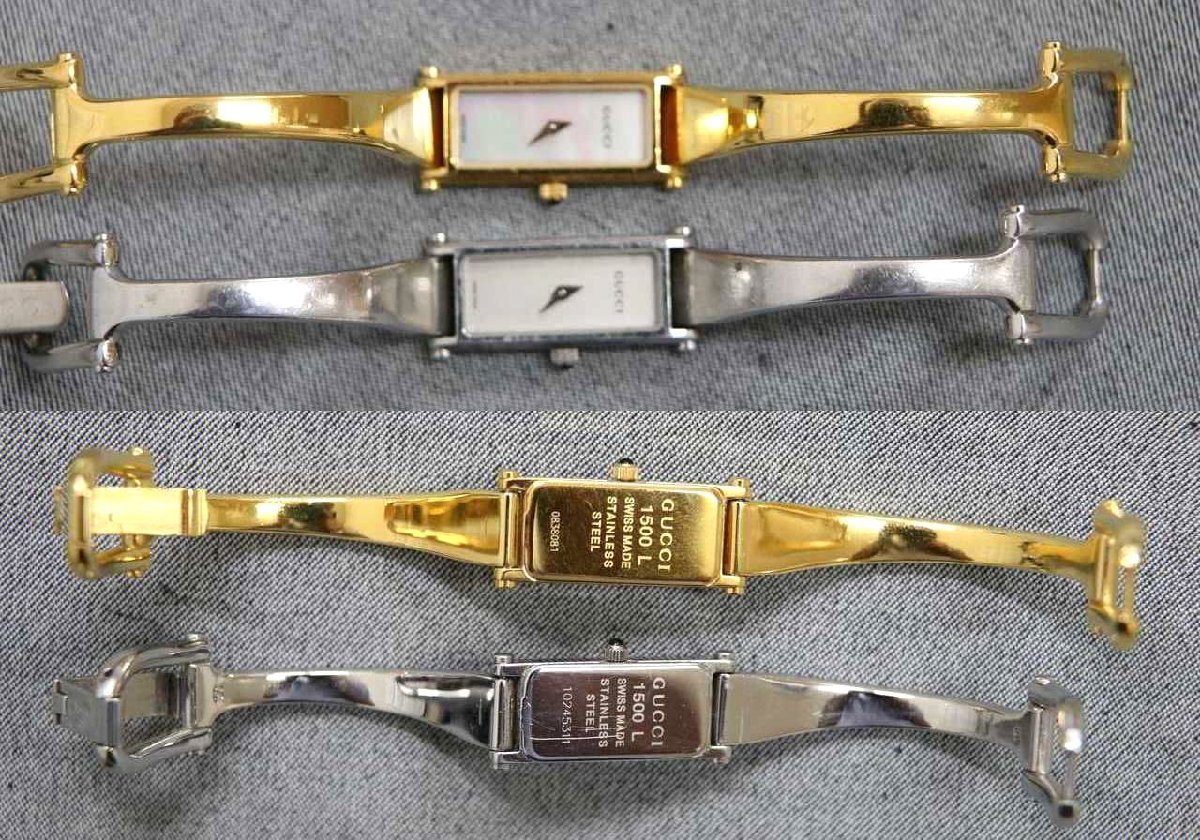 1円~ 【レディース腕時計】本物保証 GUCCI グッチ 1500L ゴールド シルバー 2品セット |