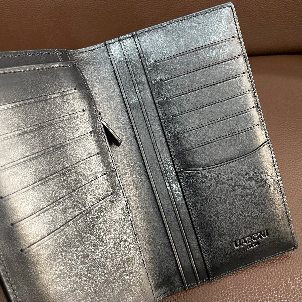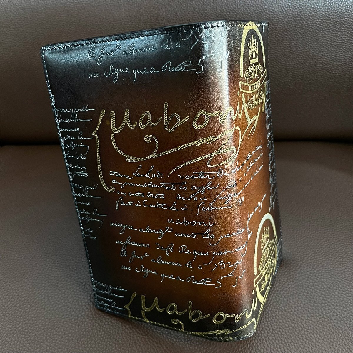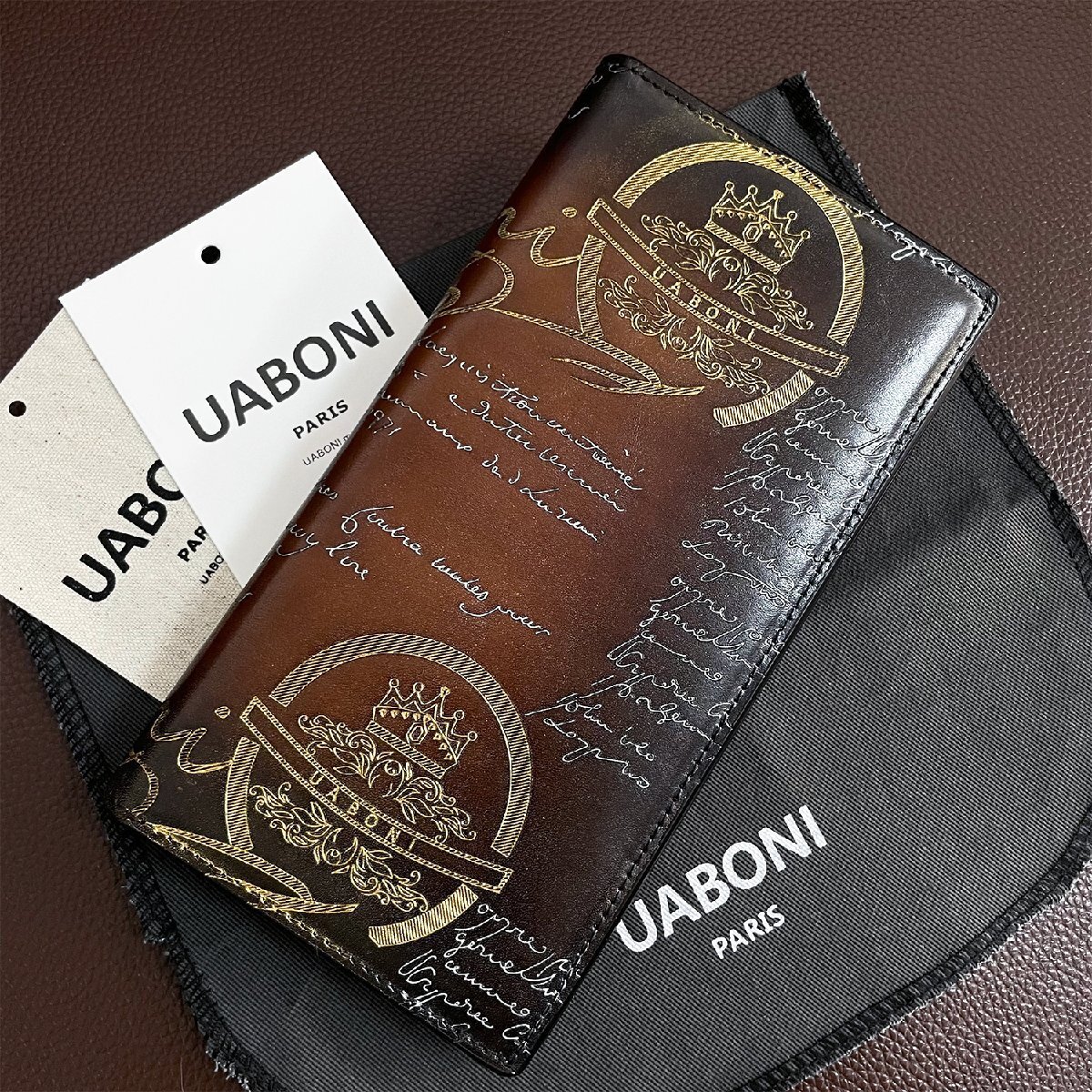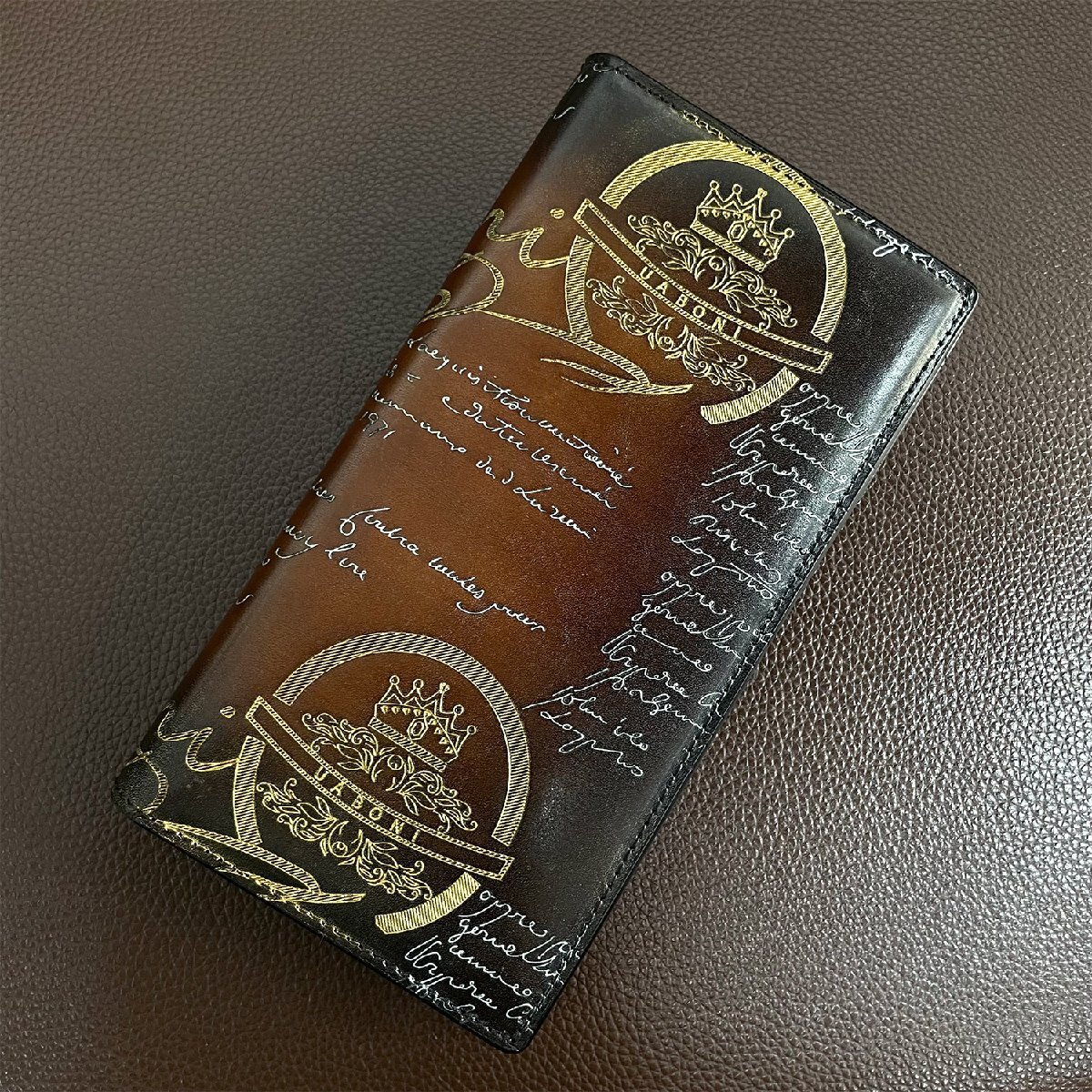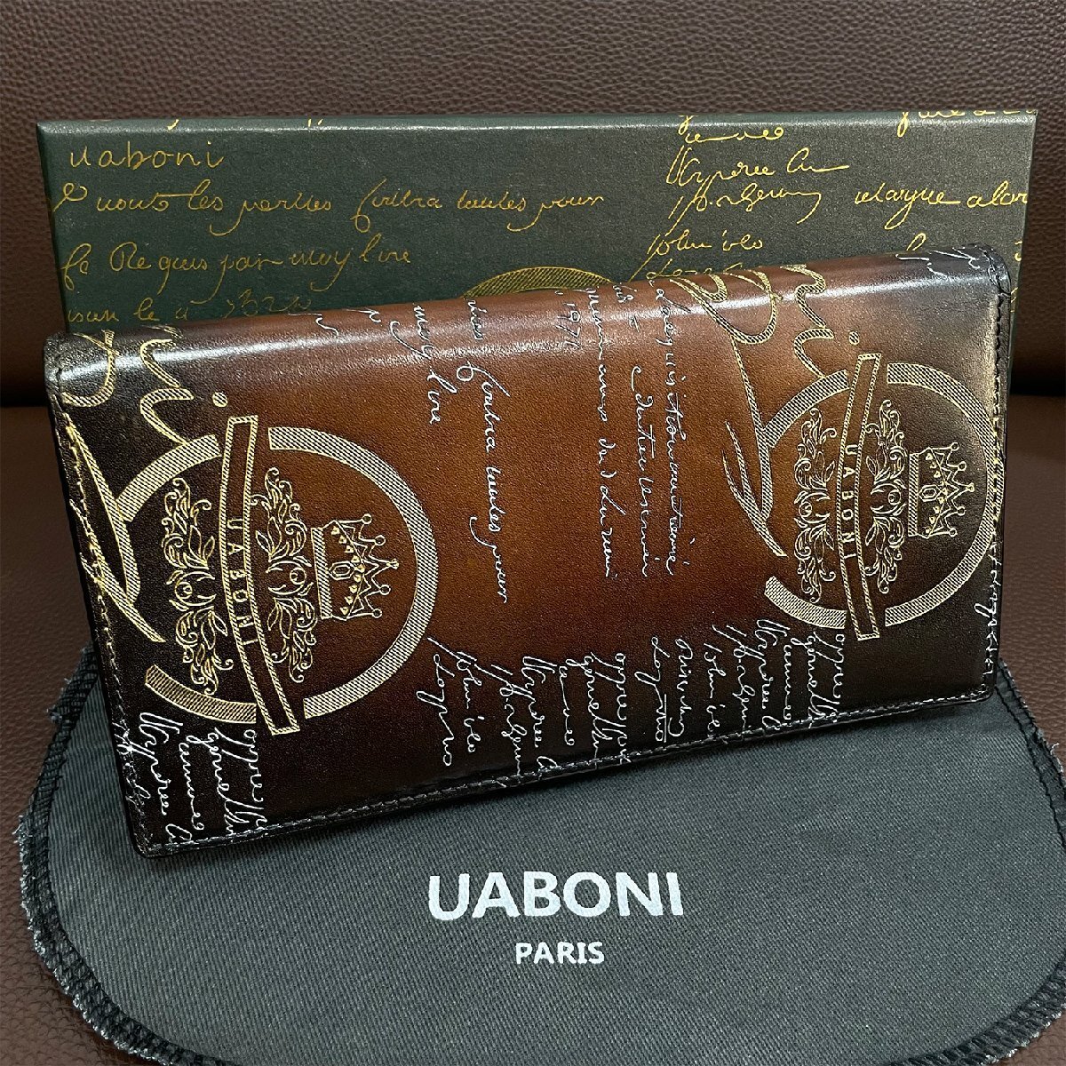 高級 定価17万 特注限定品◆UABONI*ユアボニ*幻のパティーヌ*二つ折り 長財布*EU製◆カリグラフィー 手染 カーフスキン 本革