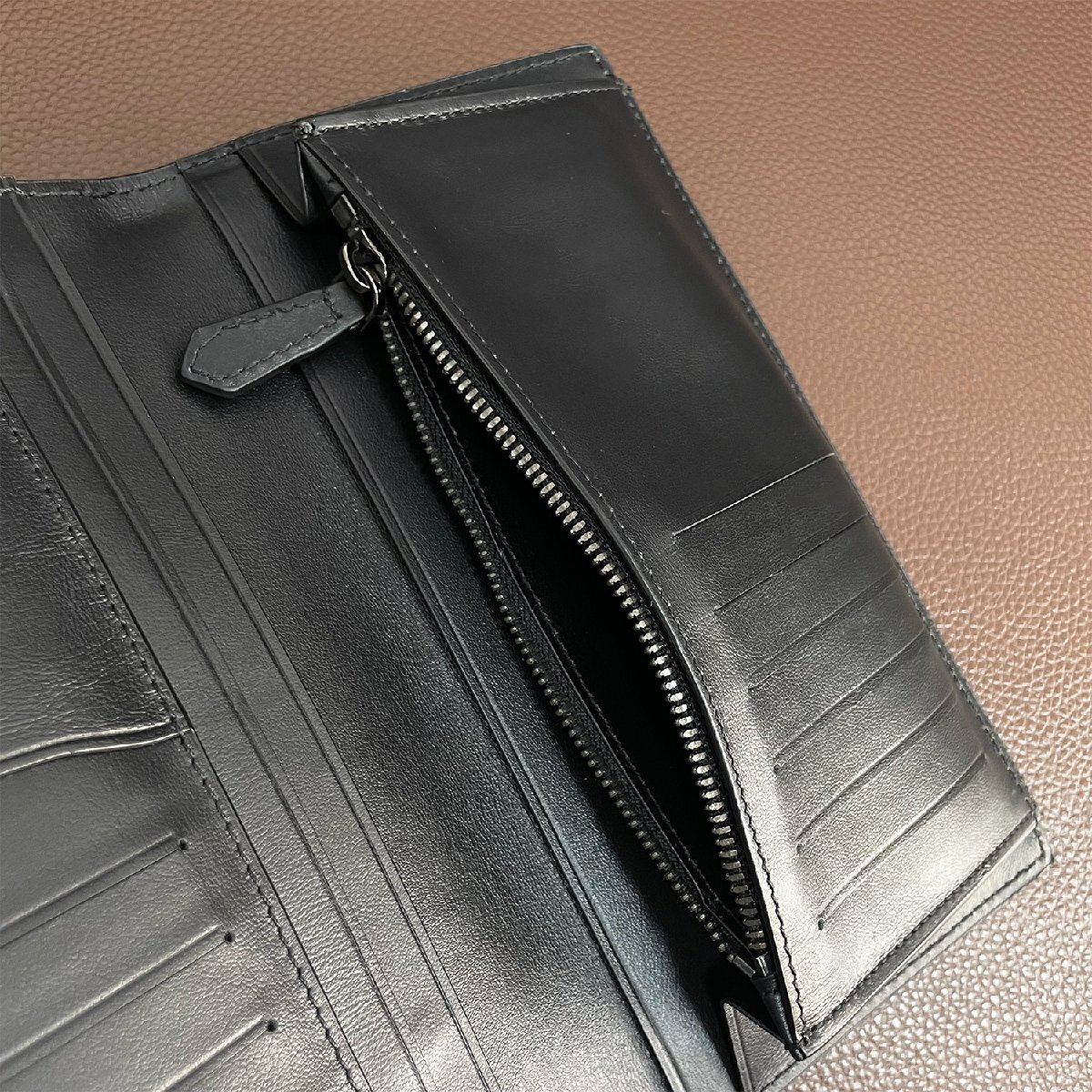 生後6ヶ月未満の牛の革を原料とした牛革長財布。革質は軽く薄く触り心地もとても気持ちいいです。特徴の革素材は希少価値が高い素材です。