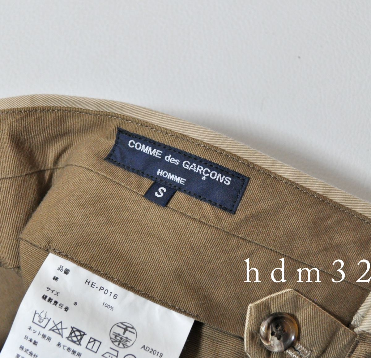 美品 COMME des GARCONS HOMME コムデギャルソン テーパードチノパンツ サルエル AD2019 #165
