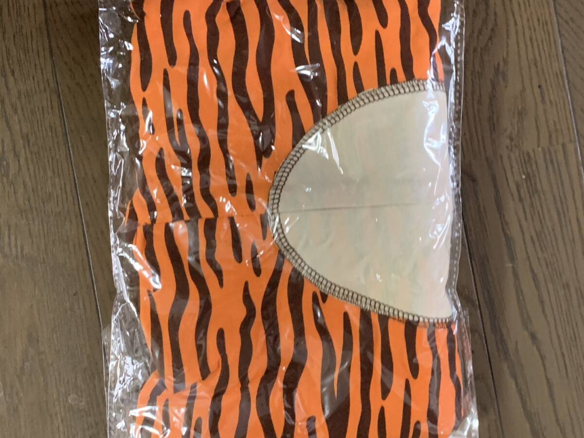 鮮やかなオレンジと茶色のトラ柄コスチューム。