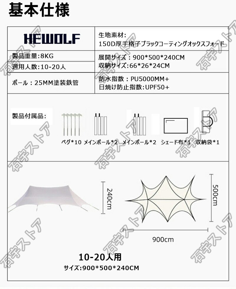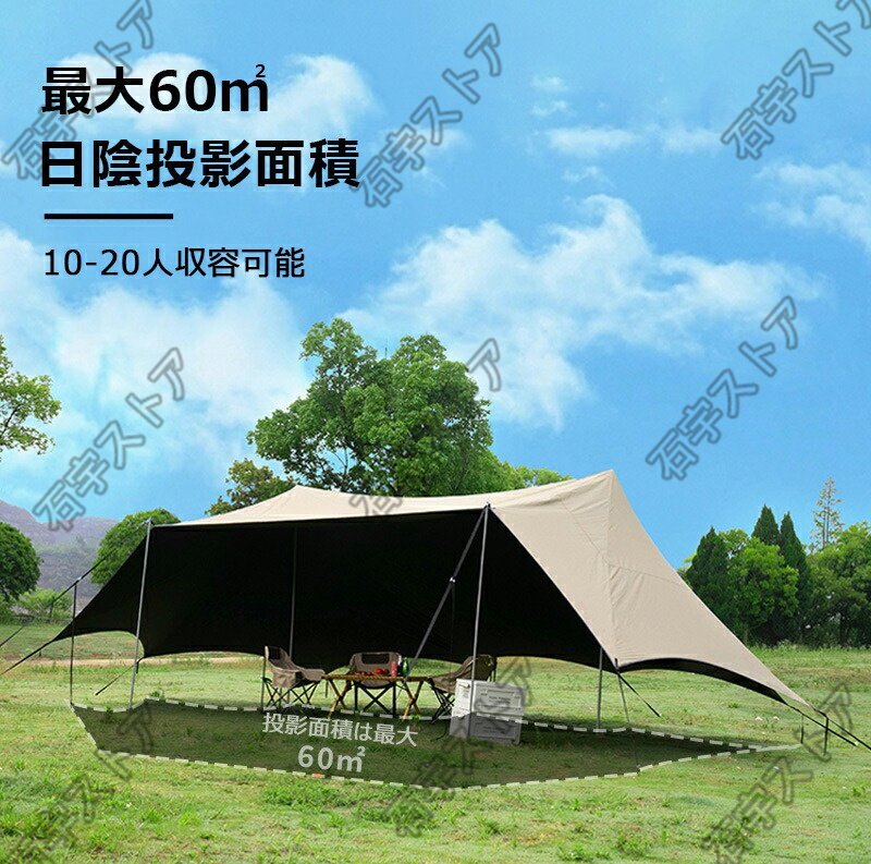 大型タープ 日陰面積最大60平米 ブラックコーティング コンパクト収納 日焼け防止 収納バッグ付き 防水 耐摩耗性 アウトドア shw192