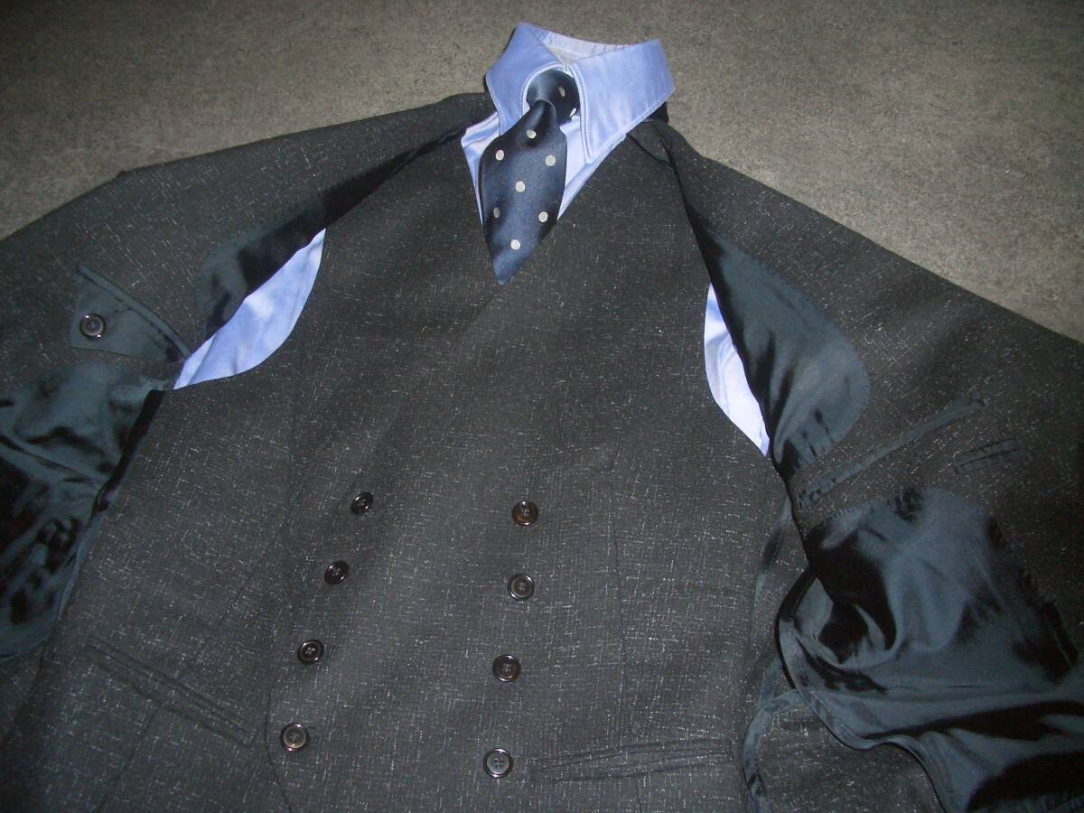 生地、お色、形、デザイン、どれをとってもこれ以上かっこいいスリーピーススーツは他にはないと断言できるほどの最高のスーツですので、この機会に一生物のスリーピーススーツを手に入れてはいかがでしょうか。