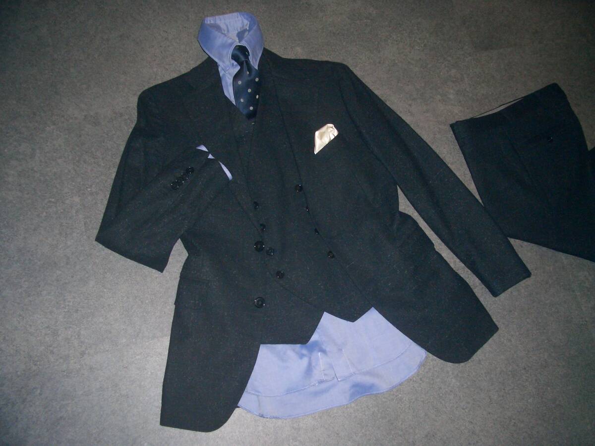 こちら、約24万円で購入したタリアトーレの最高級ライン、1度のみ着用の美品、今期流行のツイードのブラック、スリーピーススーツになります。