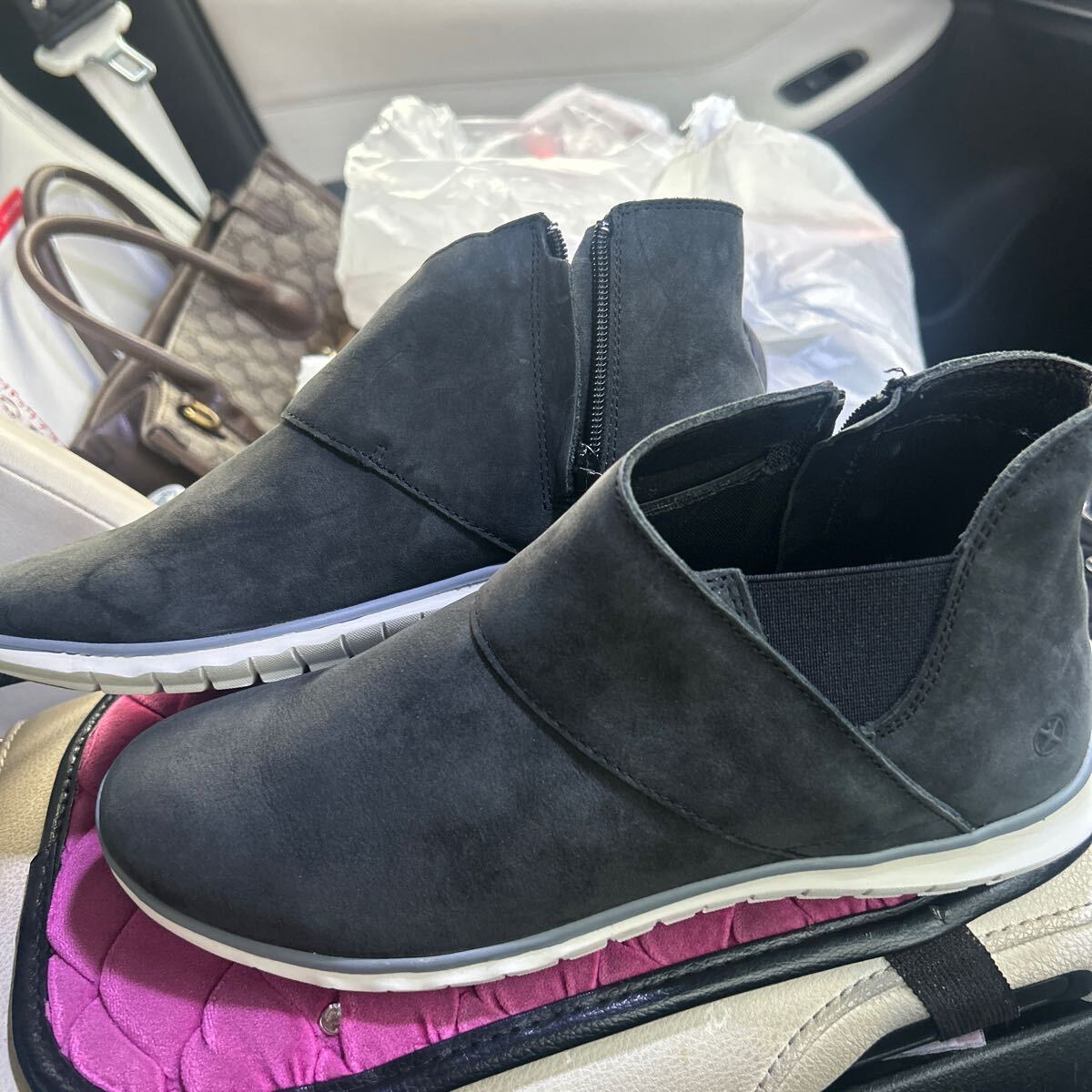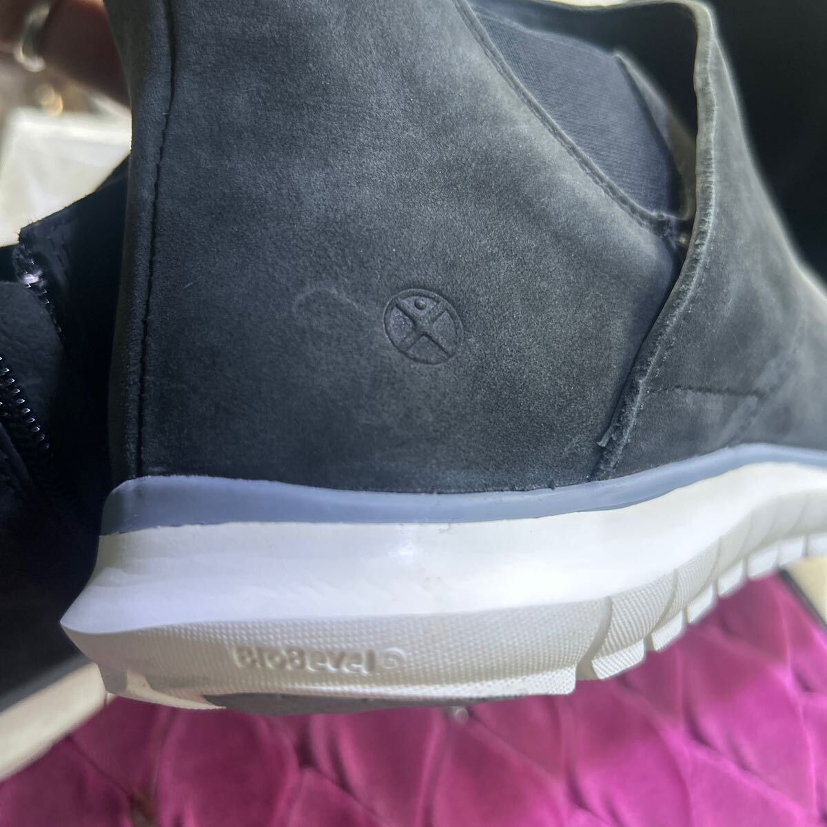 新品未使用品です♪軽量でクッション性、撥水性に優れた柔らかな天然皮革のウォーキングシューズです♪サイドジッパー付きで脱ぎ履き楽々!発送はレターパックで全国600円にて。激安の千円スタートです♪