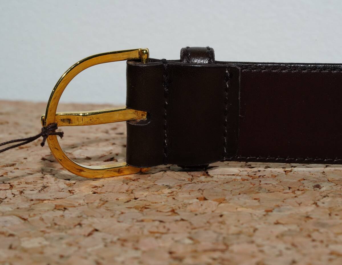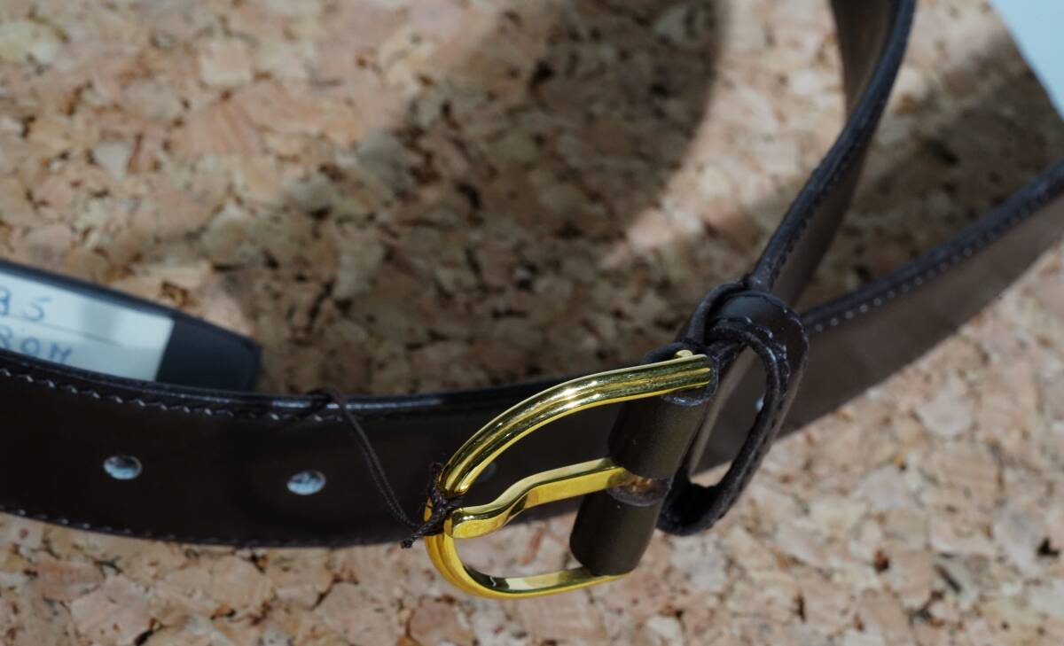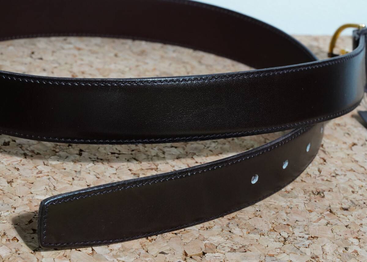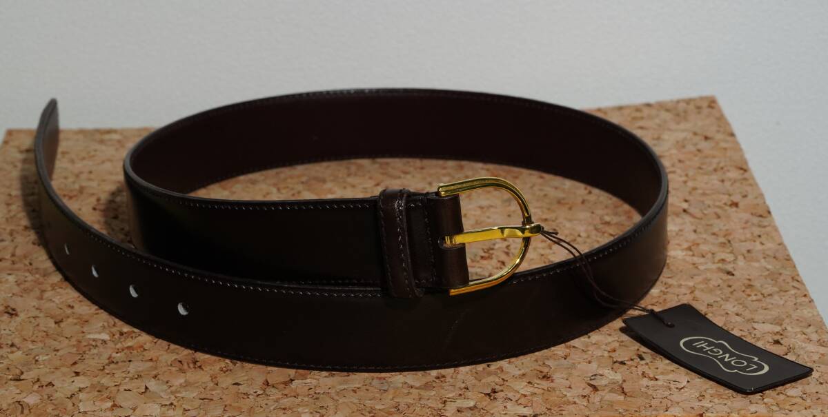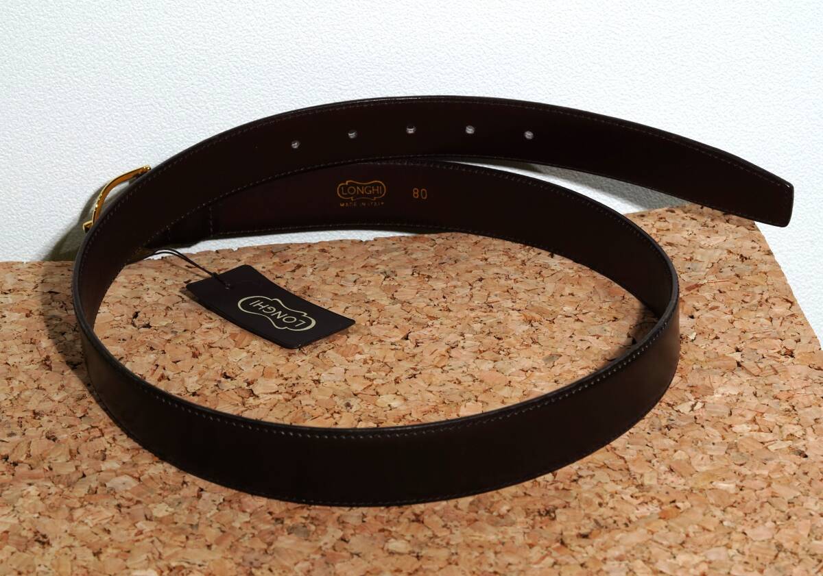 美品 高級 イタリア製 ゴールド金具 最高級カーフ素材 ダークブラウンレザー ベルト LONGHI