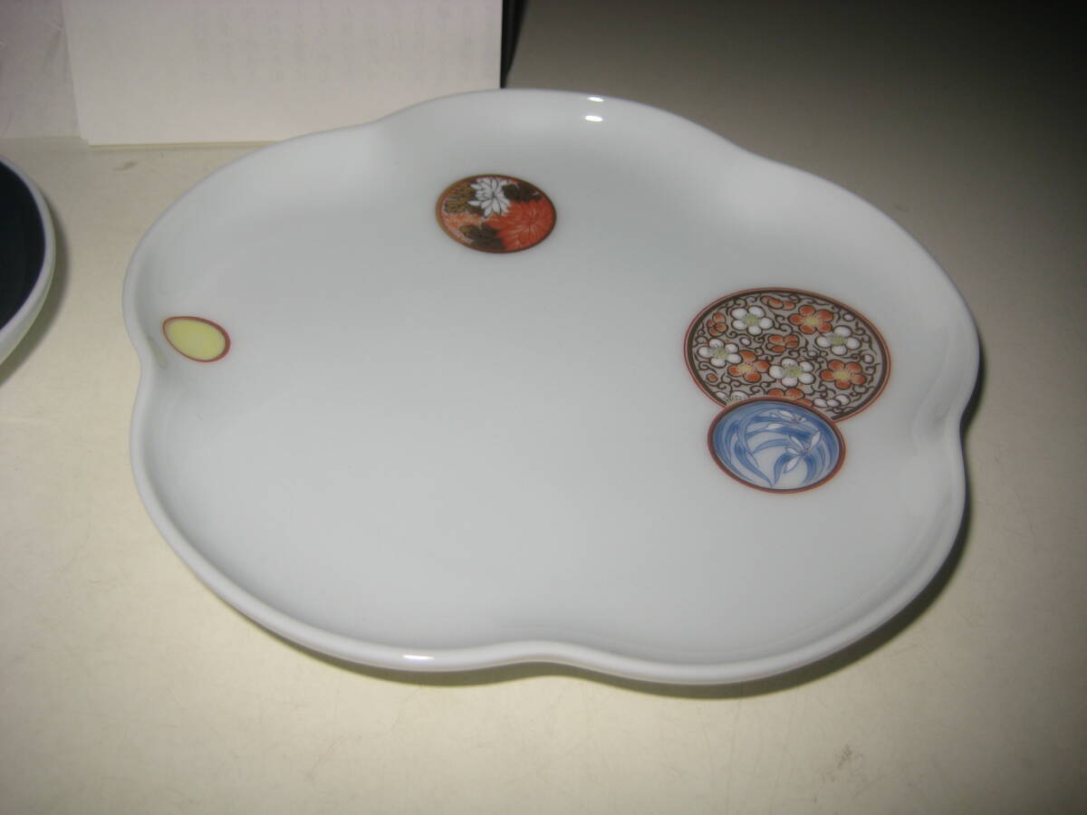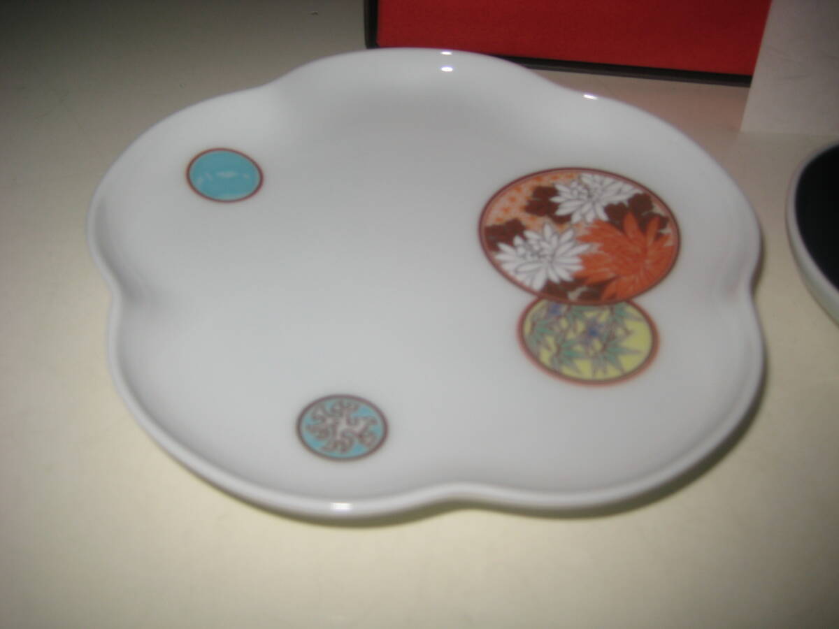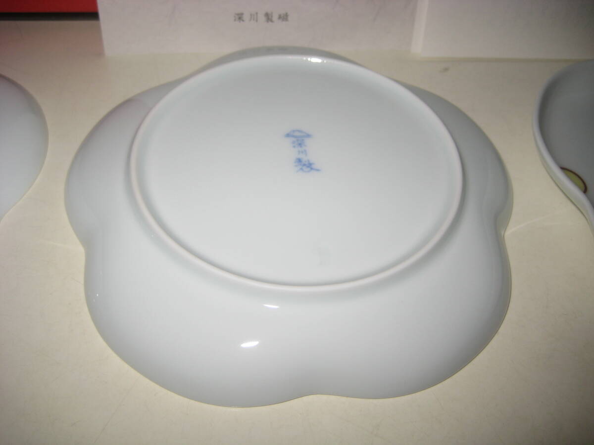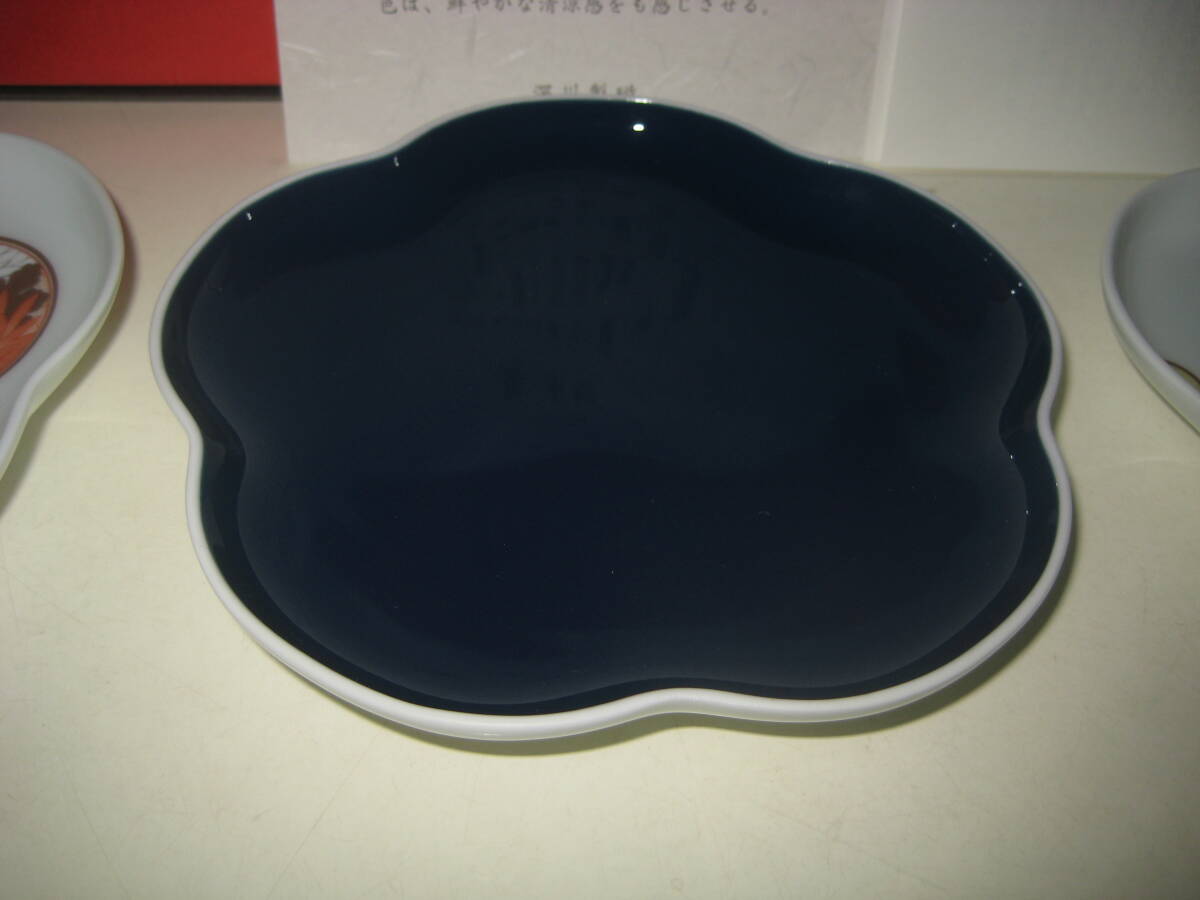 深川製磁 寿赤絵 古代呉須 花型 梅型 トリプレット 箱付 1310-238