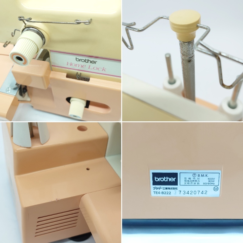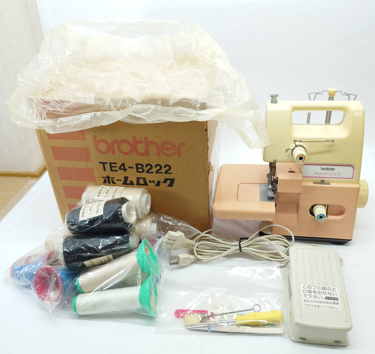 brother ブラザー ホームロック TE4-B222 ロックミシン フットペダル 糸 箱 等付属 通電簡易動作確認 現状品 手工芸 洋裁