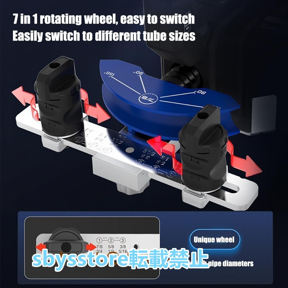 ---[7-in-1 特許取得済みランナー] - 7-in-1 特許取得済みランナー、さまざまなパイプ直径サイズに簡単に切り替えることができ、調整可能な曲げ角度により、0° ~ 90° の範囲で完璧な曲げを実現できます。緩やかな曲線も、鋭角なコーナーも、このツールで簡単に対応できます。